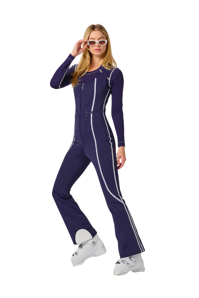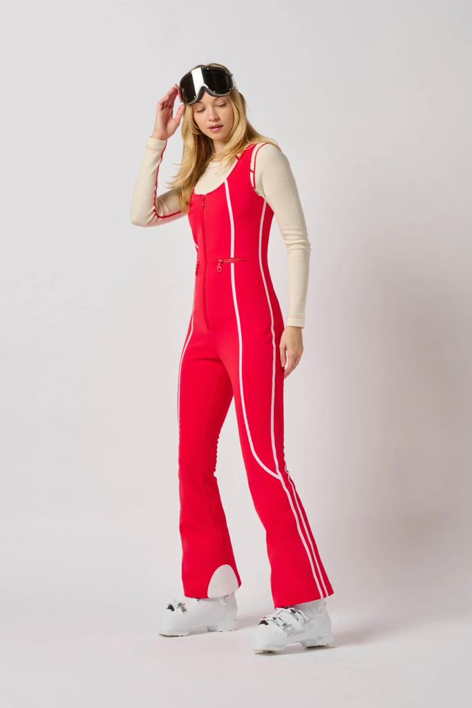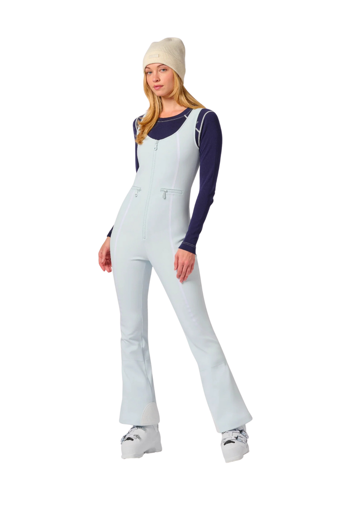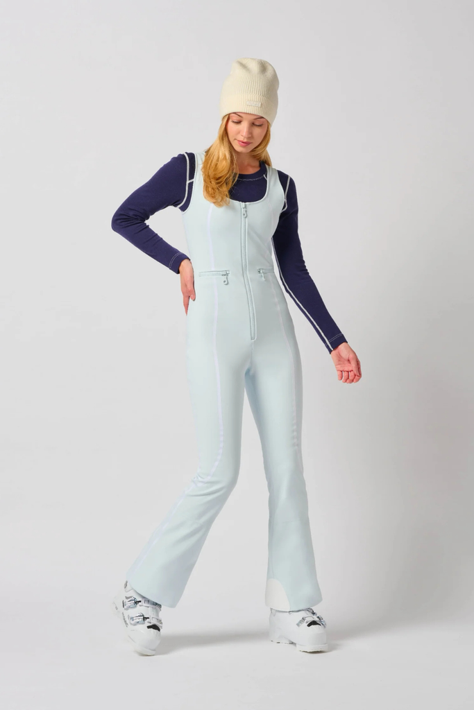 The Reese Bib Pant is a modern softshell essential designed to deliver warmth, structure, and a sculpted silhouette on the mountain. Featuring shaping seam details and a slim fit with a subtle flare at the hem, it offers a flattering profile while keeping your core protected on long ski days. A thermal fleece lining and four-way stretch softshell provide comfort and mobility, while a front-zip closure and secure horizontal pockets with YKK AquaGuard® water-repellent zippers add functional ease.