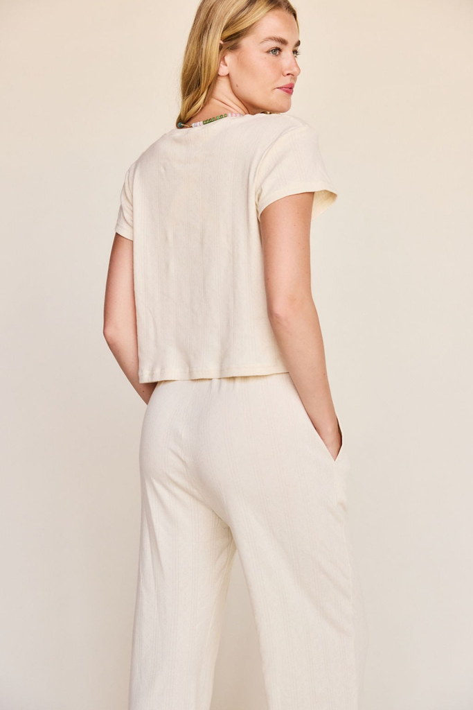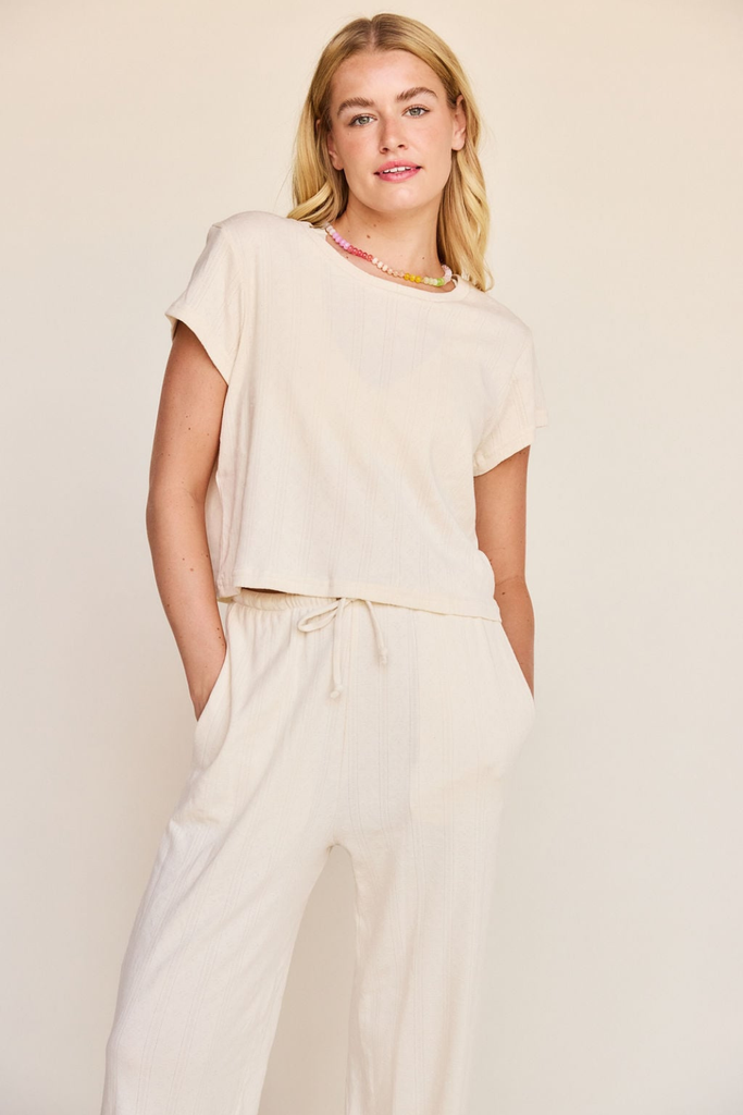 An effortless staple from Strut This. The Ayla Tee is a classic crewneck with short sleeves, crafted from soft pointelle fabric for a subtle touch of texture.
