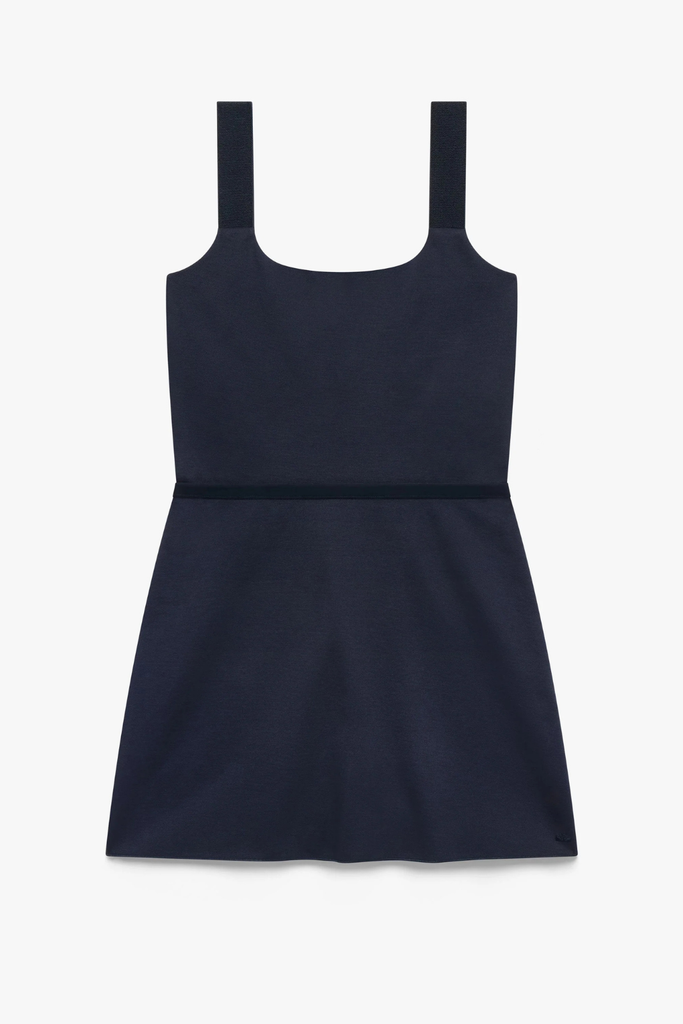 A vintage-inspired silhouette, reimagined for movement. Designed with a high-waisted fit-and-flare shape and an overlapped side slit for ease, it balances form and function effortlessly. Finished with a built-in shelf bra and sporty terry elastic straps for a subtle retro touch.