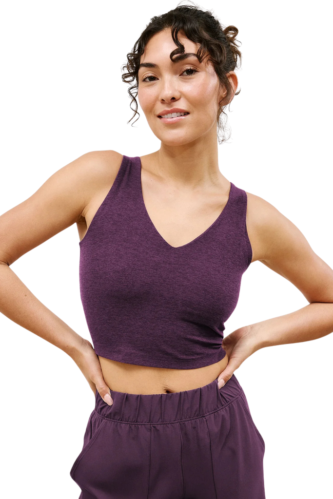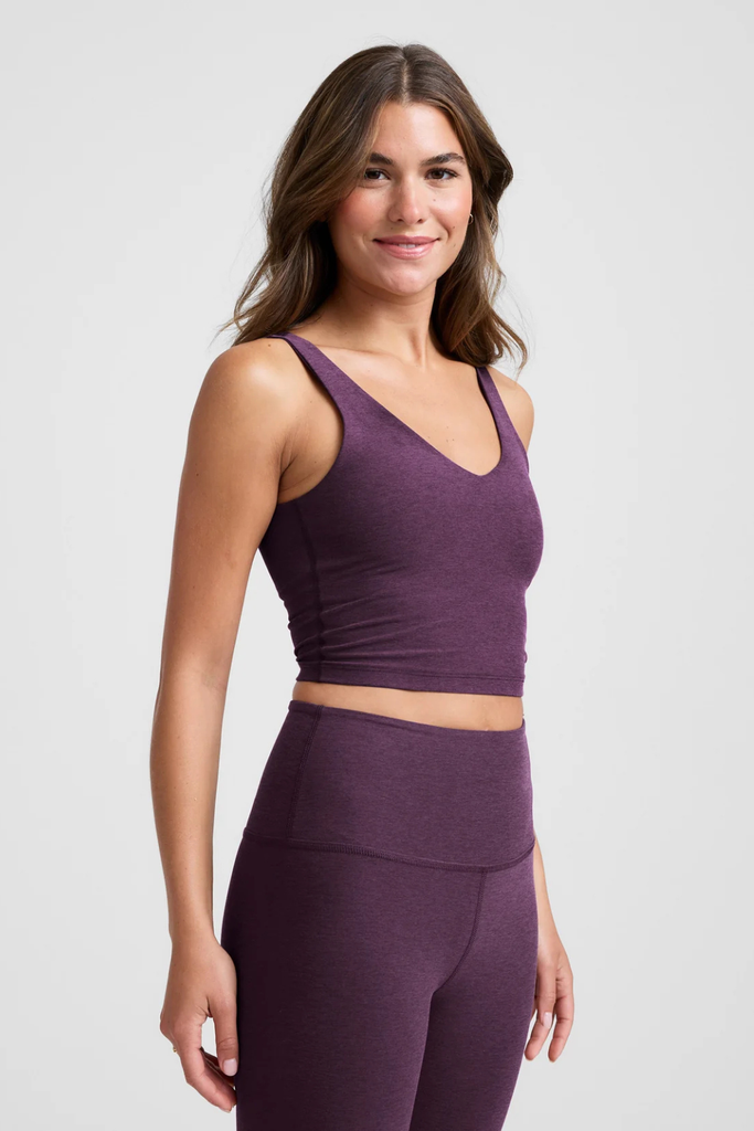 An easy, versatile staple, this cropped tank features a flattering V-neckline at the front and back. Crafted from Beyond Yoga’s signature ultra-soft Spacedye fabric with a built-in shelf bra for medium support. Designed to move seamlessly from workouts to everyday wear.