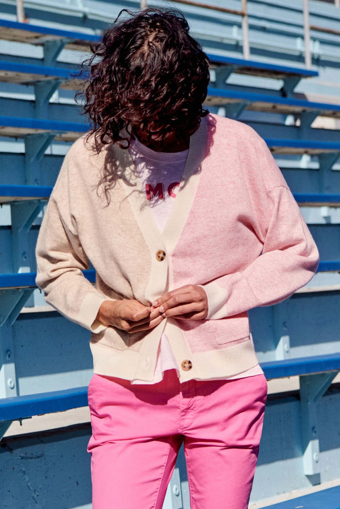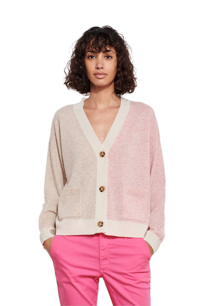 2 Tone Boxy Cardigan Oatmeal/Rosewater