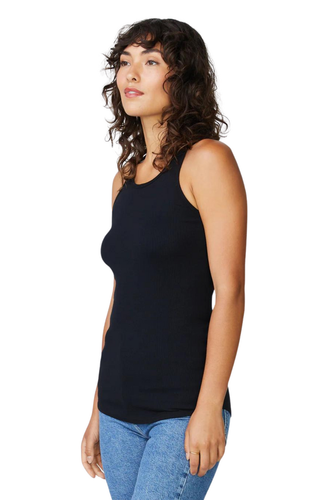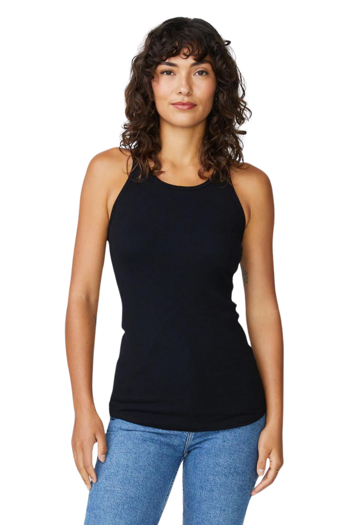 Every wardrobe can elevate with a well-fitting tank top, especially our crewneck racerback knit tank that strikes the perfect balance of comfort and stretch.