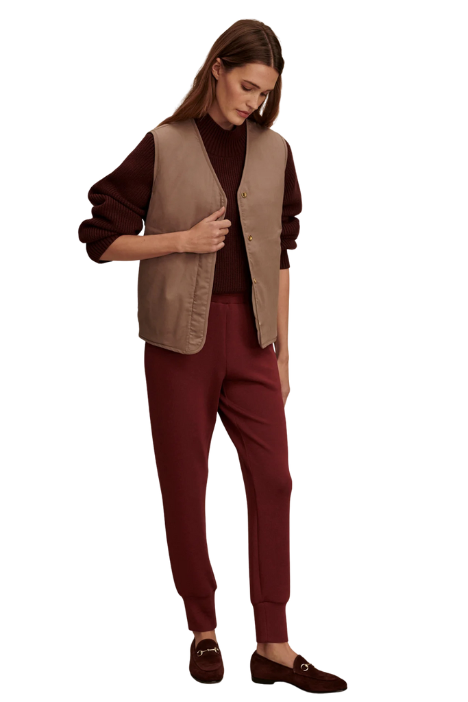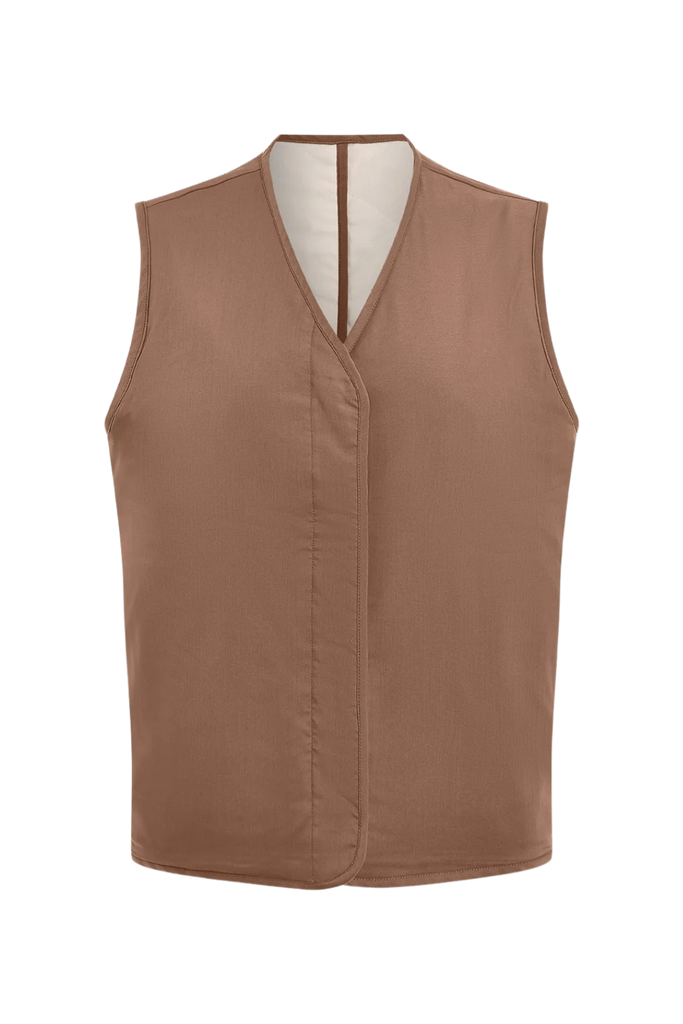 The Lori Gilet is the perfect layering piece for fall, effortlessly worn over chunky knits or lightweight long sleeves. Designed with versatility in mind, it features a reversible construction: one side in Soft Flannel with an onion quilt, contrast binding, and knitted rib pockets, and the other in Soft Touch Twill with a subtle sheen for a minimalist, polished look.
