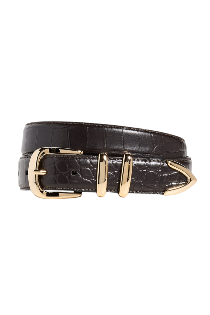 An everyday essential with refined detail. The Jordan Belt is crafted from soft croc-embossed cowhide leather, finished with feather-edge detailing and polished hardware. Designed with seven prong holes for easy adjustability, it can be worn low on the hips or cinched at the waist—versatile, timeless, and endlessly wearable.