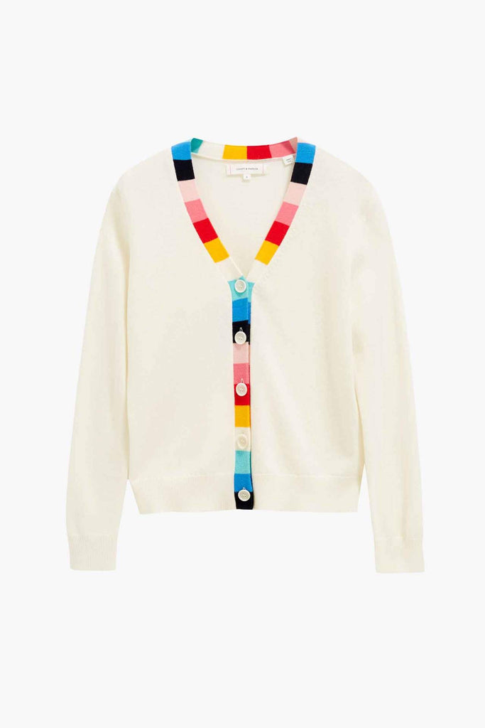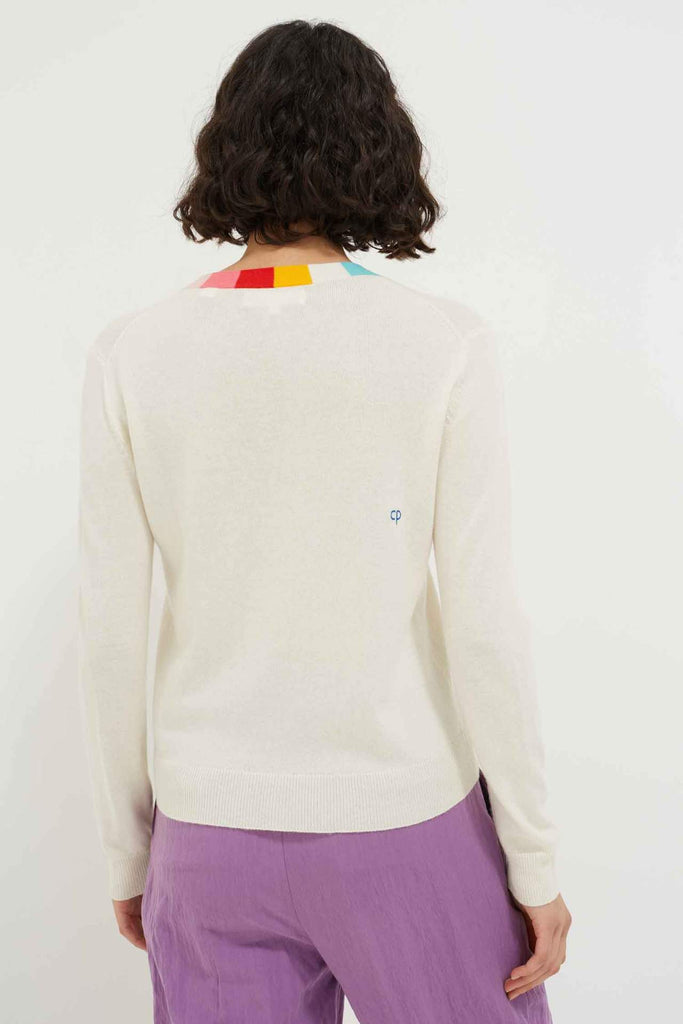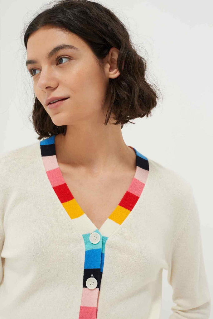 A fun twist on a classic cardigan, this sweater is elegant with a pop. Perfect for summer evenings around an al fresco table. The luxurious blend of cashmere and wool keeps it lightweight and comfortable.