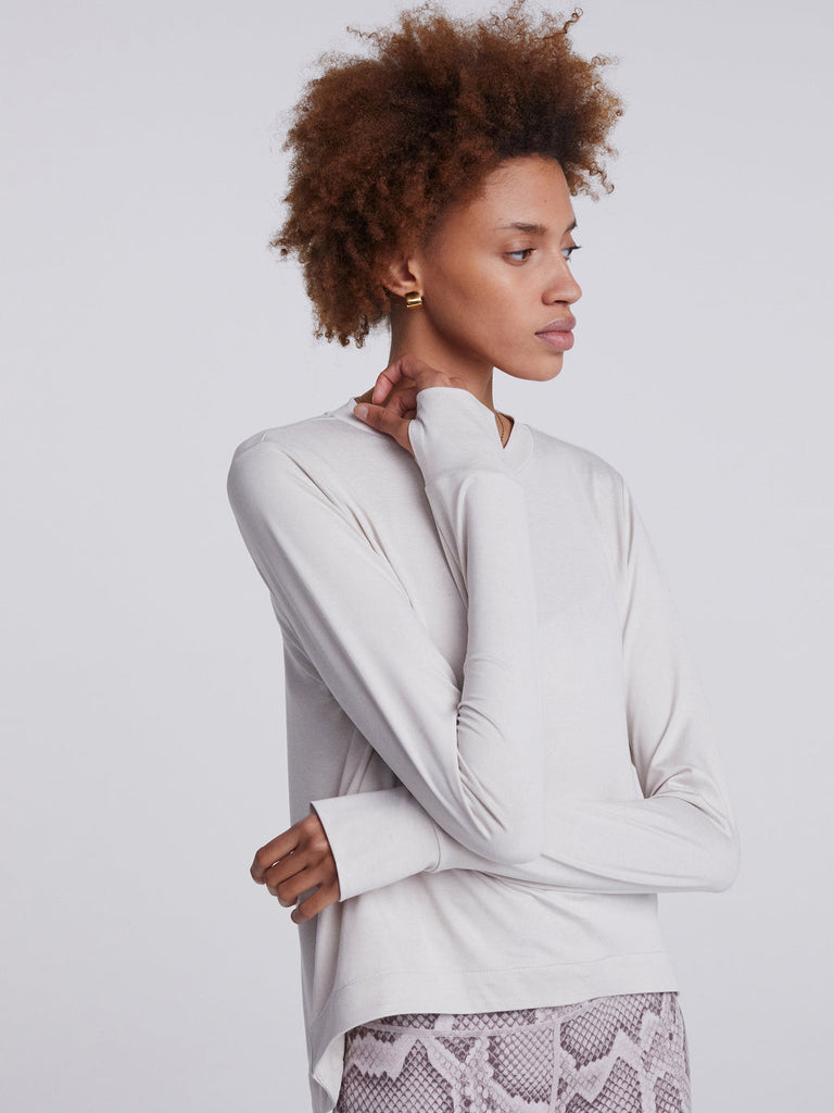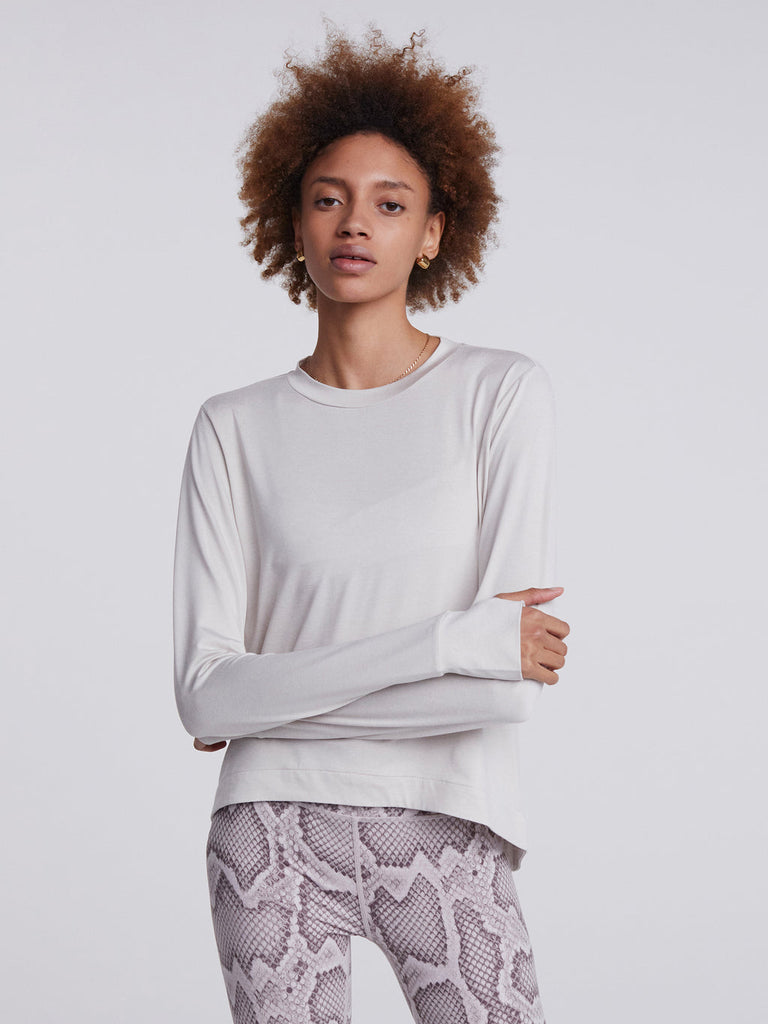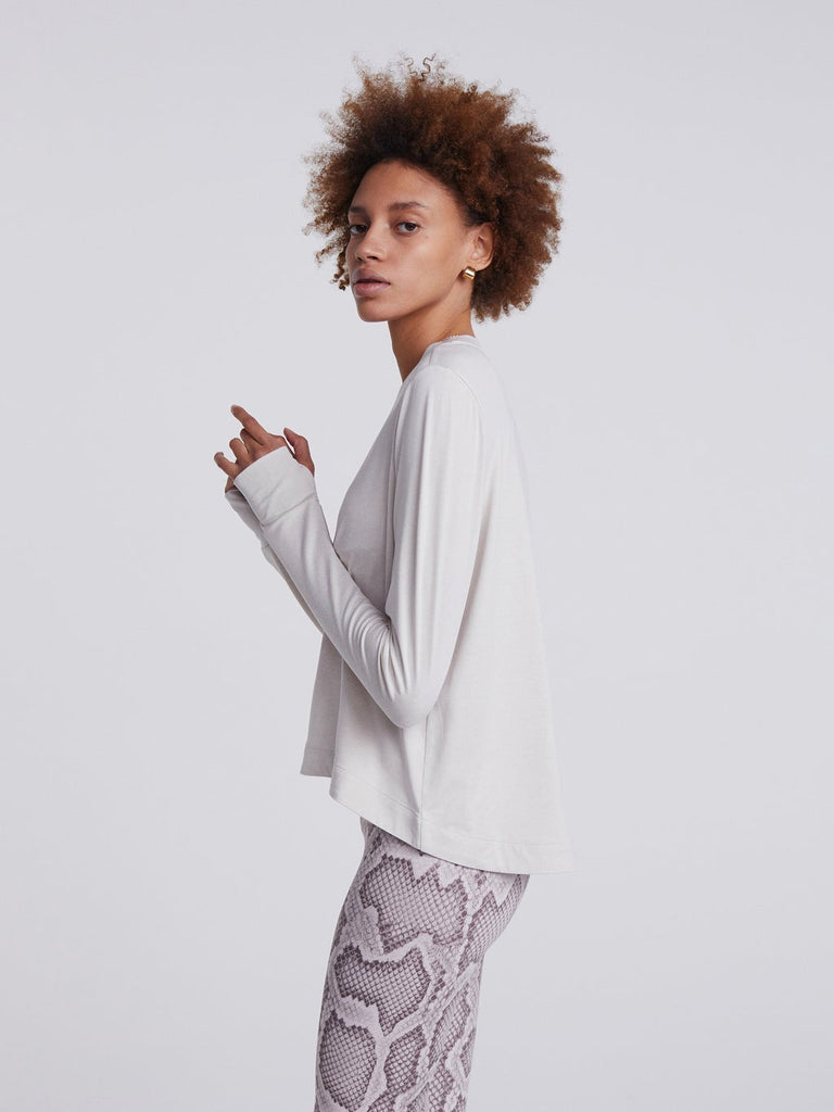 We love this easy layer from Varley. The structured fabric is comfortable and elegant. We love the slight crop and beautiful texture.
