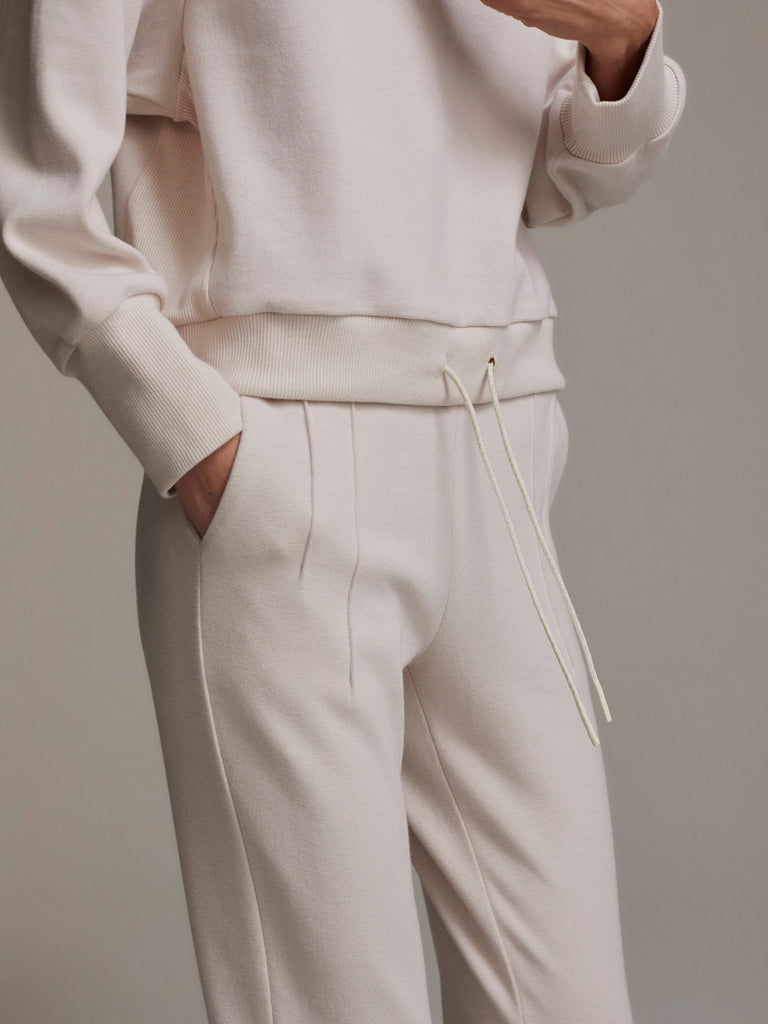 We love this easy layer from Varley. The structured fabric is comfortable and elegant. We love the slight crop, drawstring waist, and beautiful collar.