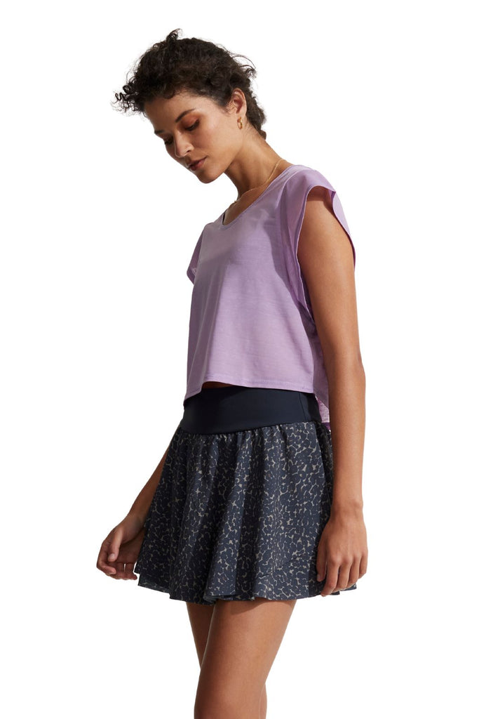 This cropped, scoop-neck shirt is a great option for outdoor summer exercises. Its super-lightweight fabric will keep you cool and comfortable all season long.