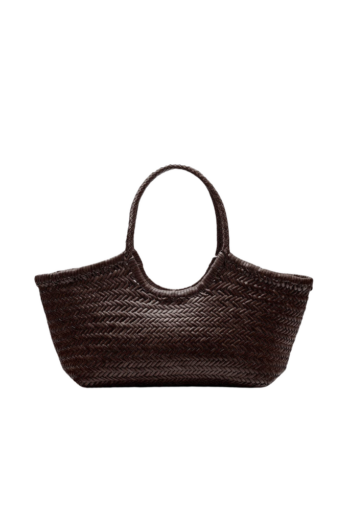 Introducing the Nantucket Bag by Dragon Diffusion, inspired by the sunny Massachusetts island. Handwoven from soft buffalo calf leather, it features braided handles and an unlined, roomy interior – perfect for laid-back picnics under the summer sun. Discover the hand-sewn antiqued St. Christopher medal charm inside each Dragon Diffusion bag, signifying our brand's authenticity and love for travel. Elevate your style with this charming and practical tote, ideal for all your adventures.