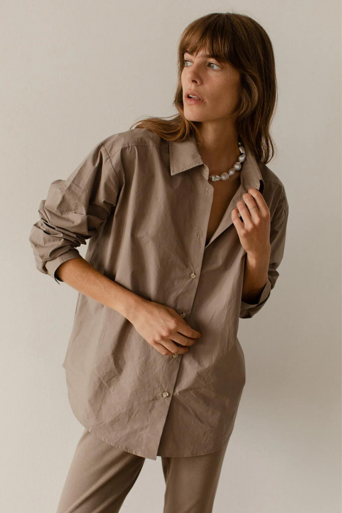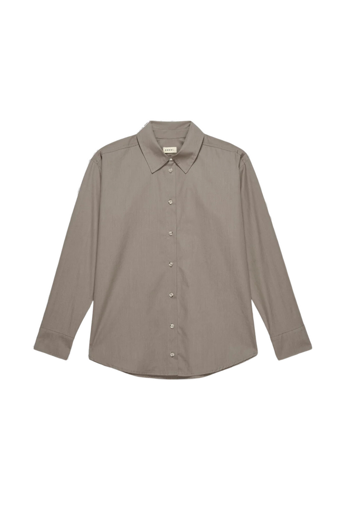 Donni's iconic button down is a timeless essential crafted from 100% cotton poplin. It showcases a subtle dropped shoulder and tortoise-like buttons for a versatile and seasonless appeal.