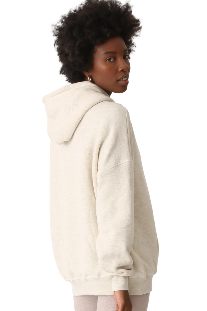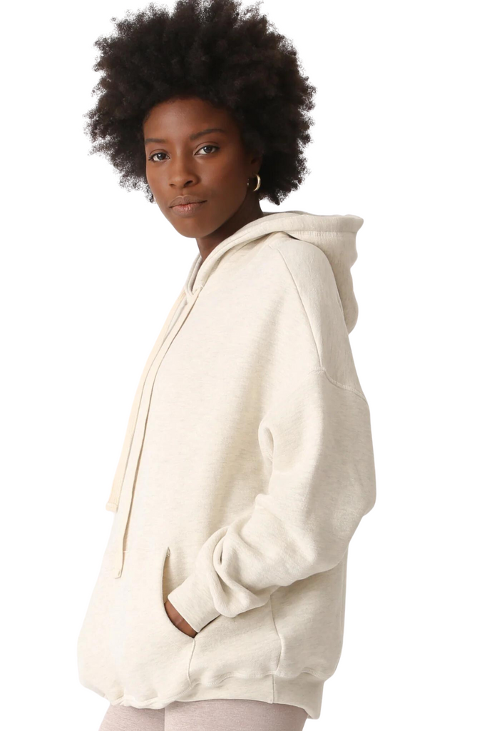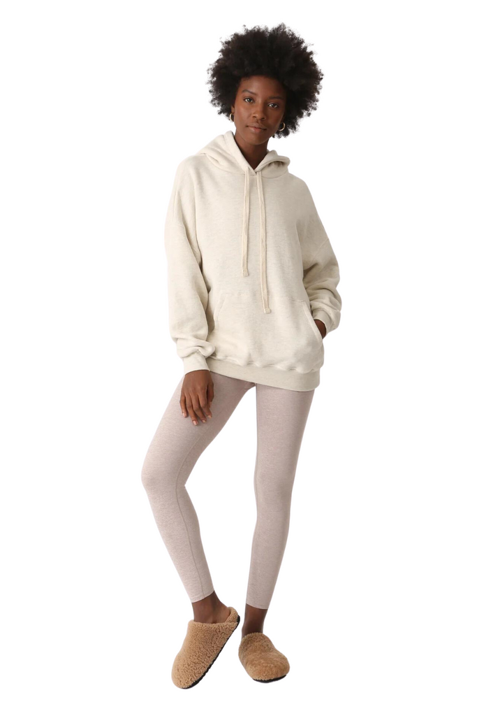 The Taylor hoodie boasts a generously relaxed, boyfriend-style fit, complemented by its natural twill drawcords and practical kangaroo pocket. To achieve a harmonious ensemble, consider teaming it up with either the Elin pant or the Venice legging.