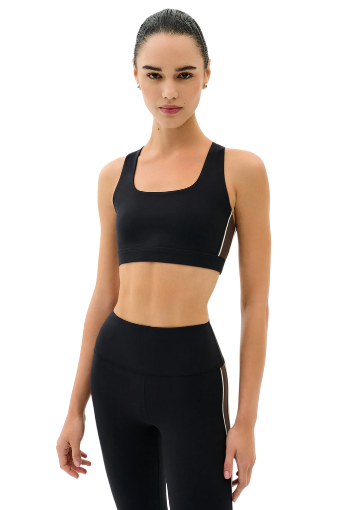 The Rigor Sports Bra delivers sleek, high-coverage support with a high neckline, wide racerback, and extended length for extra comfort. Designed for high-impact performance.