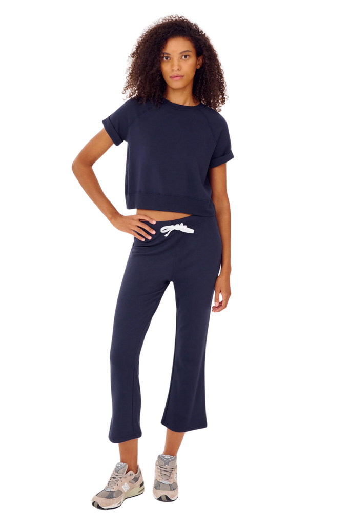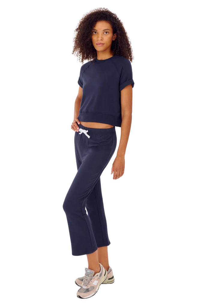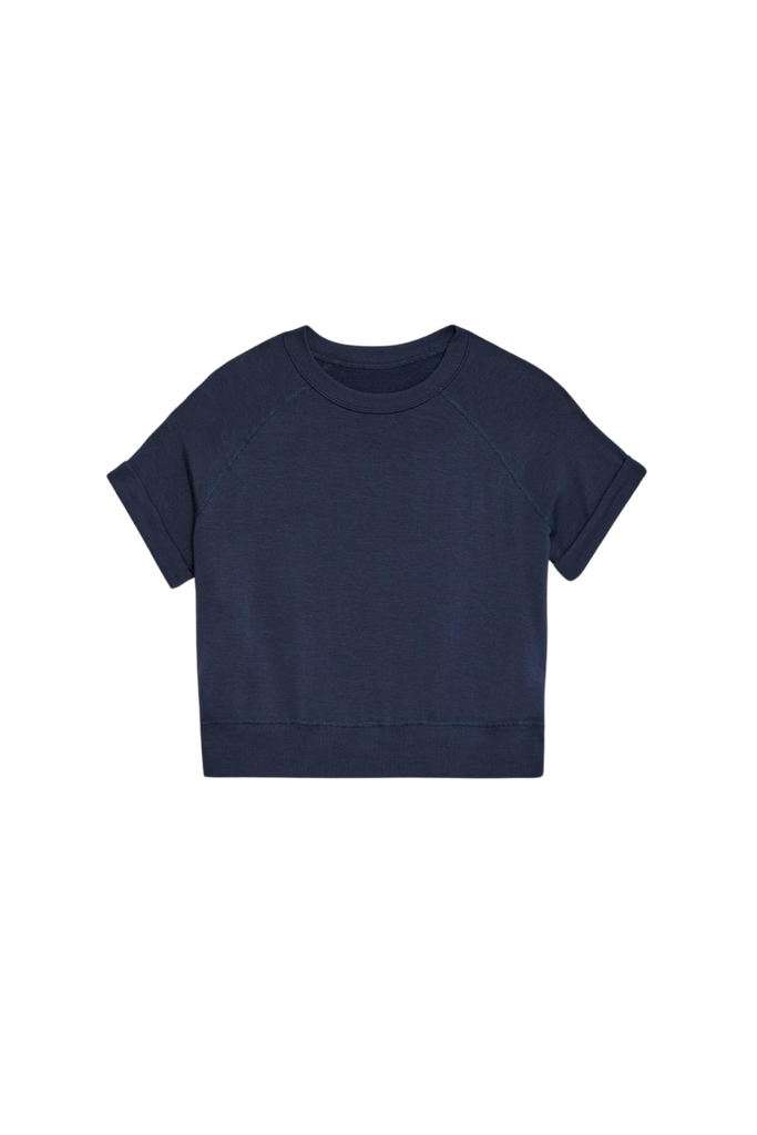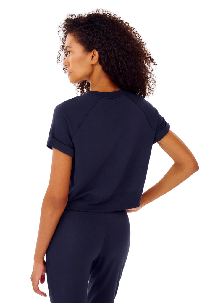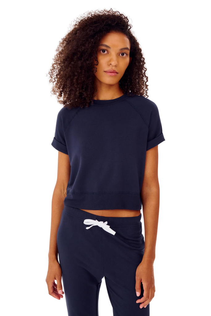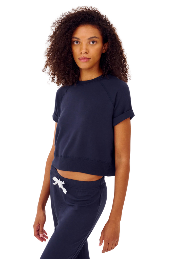Experience ultimate comfort and versatility with this crewneck pullover boasting short raglan sleeves. Its soft fabric and semi-cropped length, reaching just above the hip, ensure a flattering fit that you'll love.