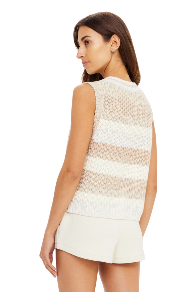 The Nikko V Neck Knit Vest reimagines classic sport styling with a modern, elevated feel. Crafted from organic cotton in multi-marle yarns, this chunky knit silhouette features a deep V neckline framed by a contrast stripe. A versatile layering piece that moves seamlessly from casual days to polished off-duty looks.