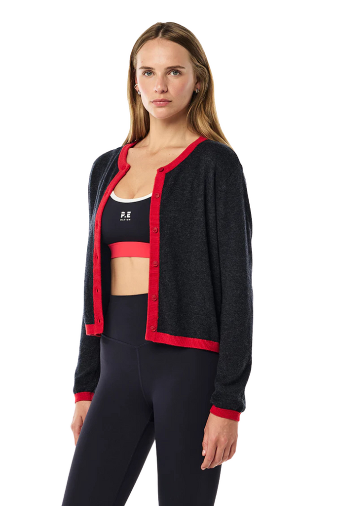 The Rise Knit Cardigan is crafted from a soft cashmere blend for a luxurious feel. Designed in Marine Blue, it’s finished with contrast tipping, front button closure, and an embroidered logo at the hem. A versatile layer for both lounging and everyday wear, it pairs easily with activewear or casual pieces to elevate your off-duty style.