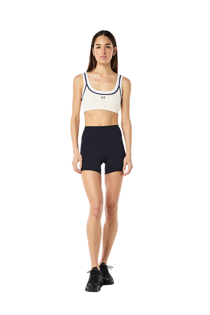 The Freeplay 5" Bike Short is crafted from PE Nation’s Studio Soft fabric, a lightly peached material with a matte finish for a smooth, comfortable feel. Designed with a high-rise fit, it features a folded waistband and a logo detail at the back waist.
