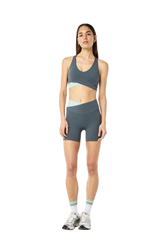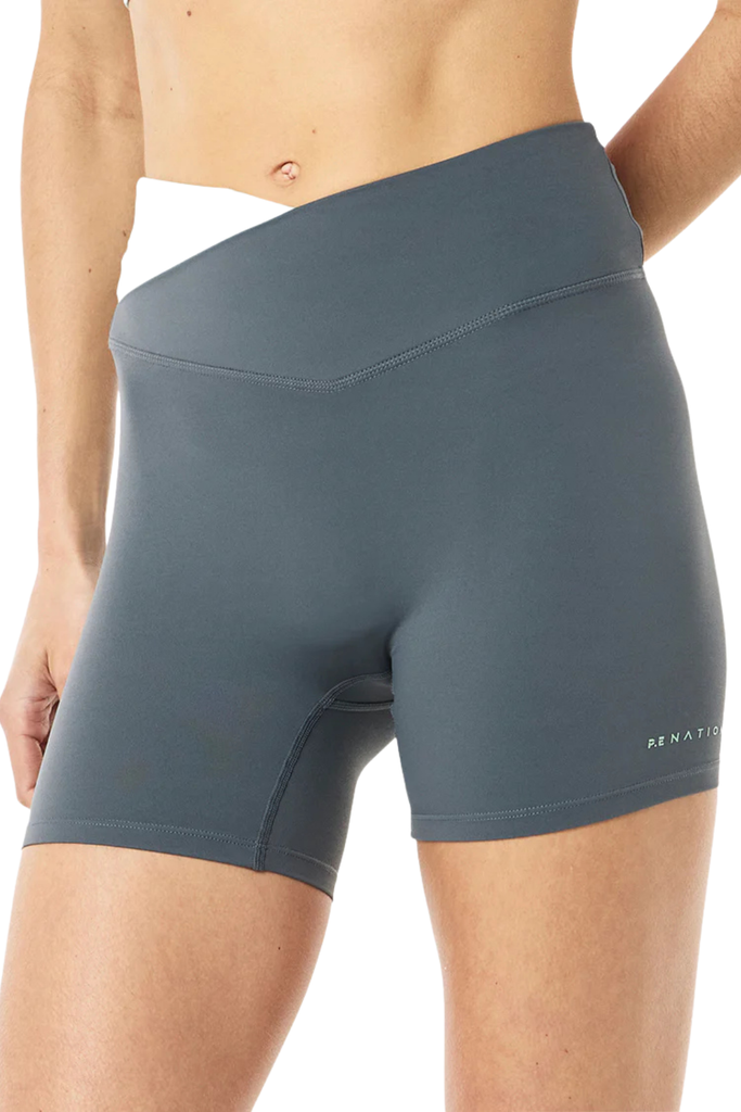 Designed in P.E Nation’s Studio Soft fabric—a lightly brushed, matte-finish material that feels smooth against the skin—this high-rise short offers a supportive yet flexible fit. The crossover waistband creates a flattering silhouette, while the 5” inseam keeps it versatile for studio sessions or all-day wear.