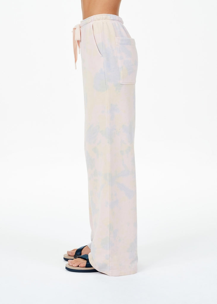Designed for everyday comfort, this flare sweatpant is a relaxed fit in a fun, subtle print. Elevate your loungewear in tie dye this winter.