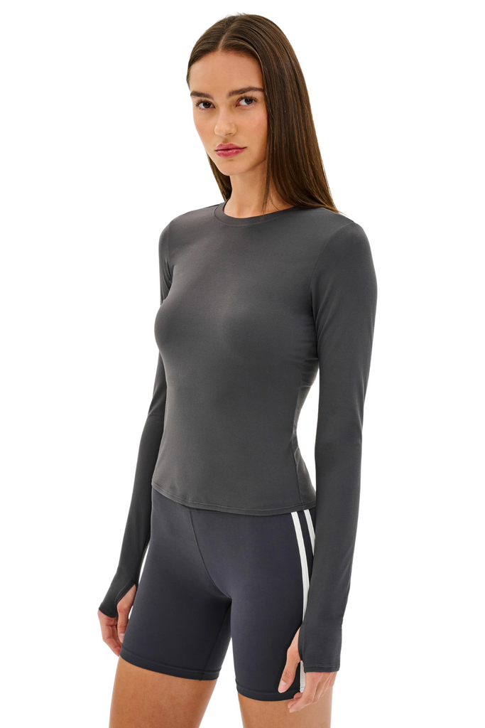 This luxe top extends the Airweight collection into a lightweight, waist-length silhouette. Designed to wear solo in cooler workouts or layered with ease. Quick-dry performance keeps you comfortable when the heat builds.