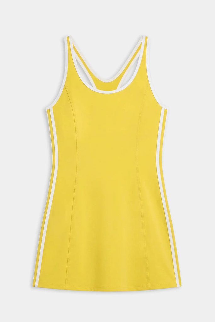 Meet the Ella Airweight Dress—designed to move with you and made from signature Airweight fabric that feels soft, light, and barely there. Finished with built-in shorts, a sleek racerback, and subtle side stripes that create a long, sculpted silhouette—on and off the court.