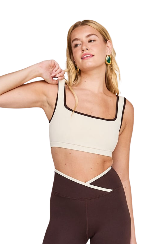 A supportive square-neck silhouette designed with clean lines and contrast trim for a modern finish. Double-lined with removable bra inserts, it offers comfortable structure and a flattering fit for studio sessions and beyond.