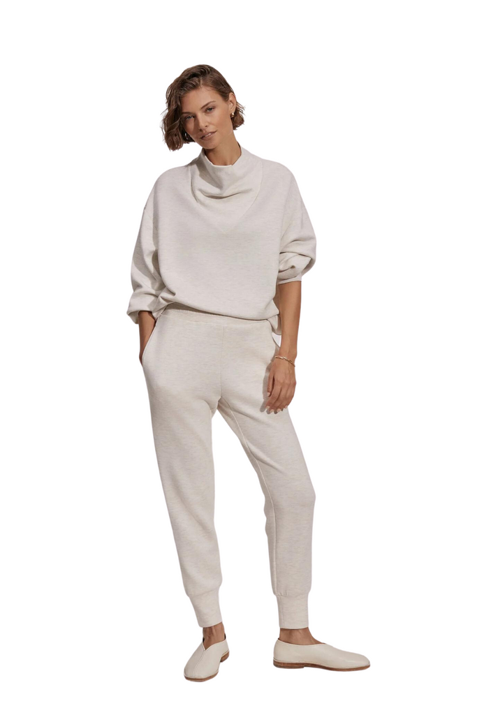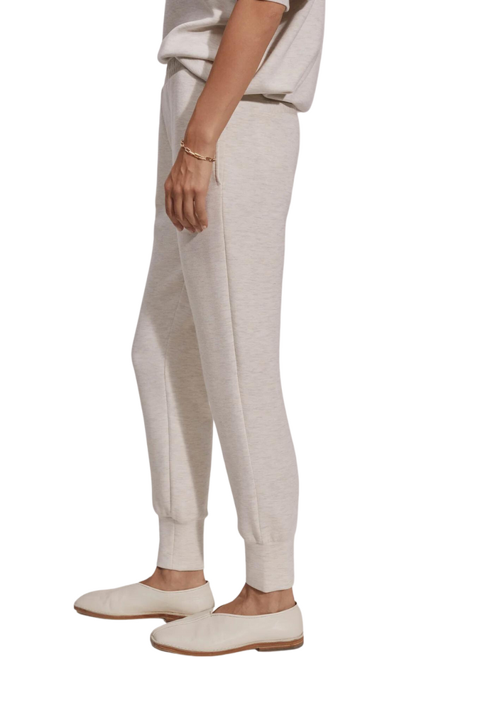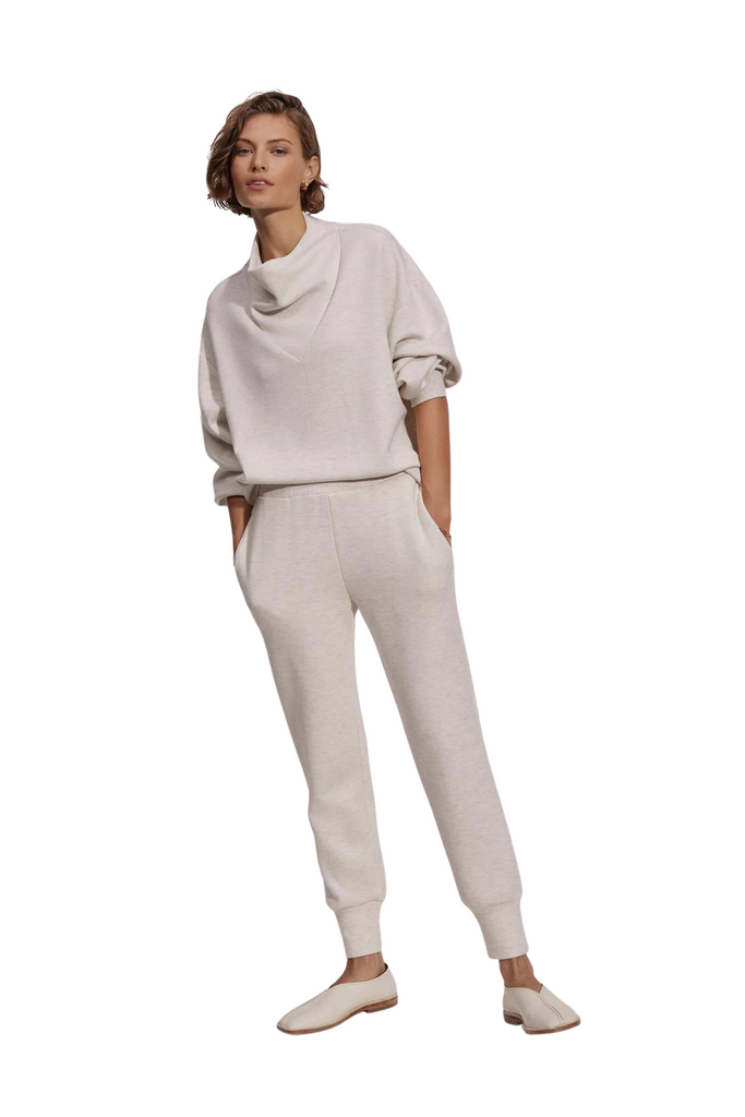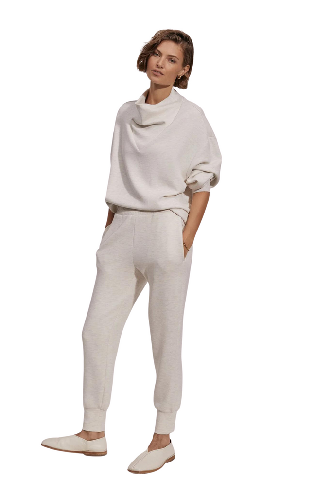 These trousers feature a sleek and well-fitted design that complements your physique, along with a folded cuff at the hem for an added hint of refinement. The adjustable waistband with its elastic feature and inner drawstring ensures a customized fit, while the functional side and back pockets add convenience. Ideal for matching with our DoubleSoft™️ sweaters, they epitomize the perfect blend of cozy comfort and exquisite style.