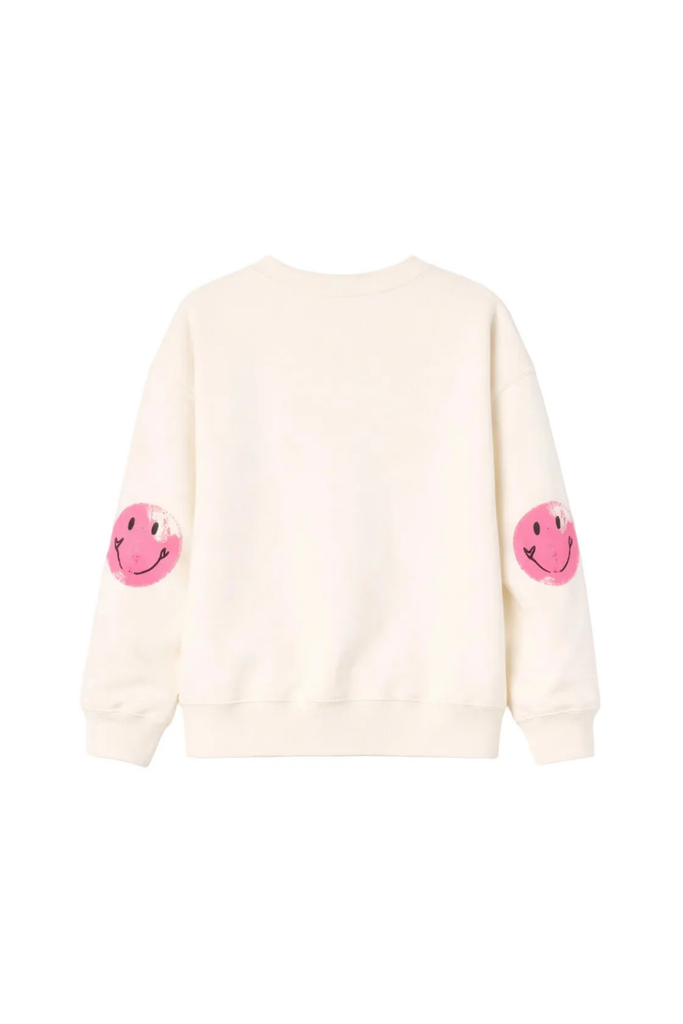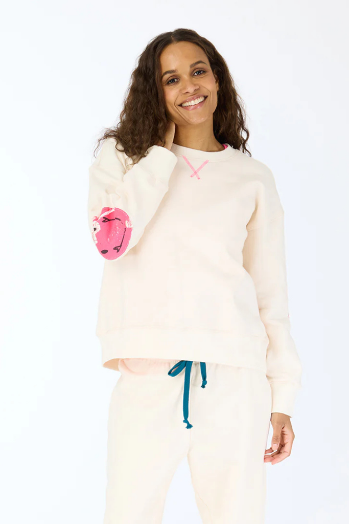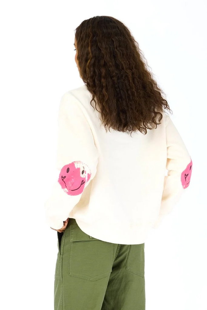 The Ex-Boyfriend Smiley Sweatshirt is crafted from ultra-soft cotton fleece with a relaxed, easy fit. Featuring playful Smiley patches from Kerri’s original Smile, Pass It On artwork, it brings a lighthearted touch to everyday layering. Designed to pair seamlessly with the Weekend Barb Sweatpant or styled on its own.