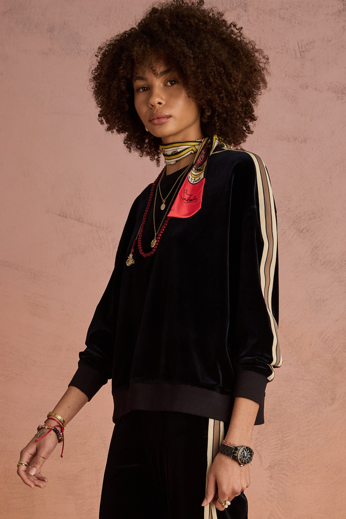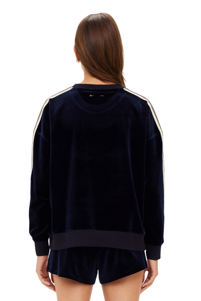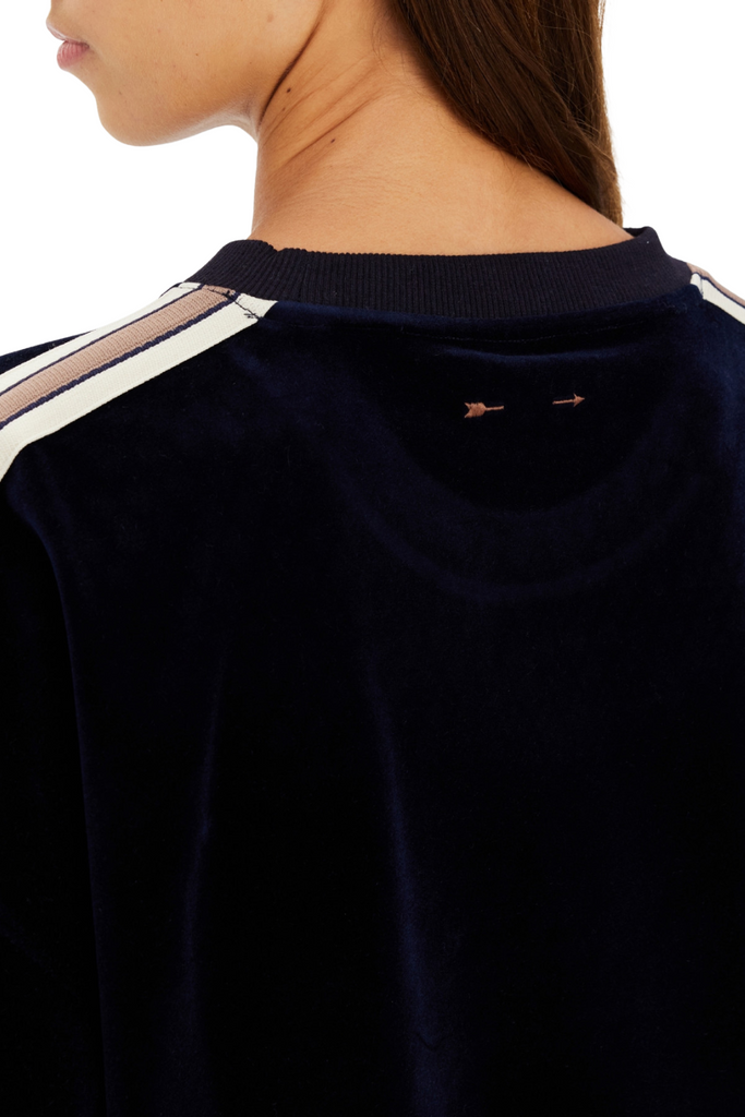 Sophisticated yet understated, this velour crew looks effortless. Crafted from ultra-soft recycled polyester, it features a relaxed silhouette, ribbed trim, and contrast knitted tape detailing for an elevated finish.