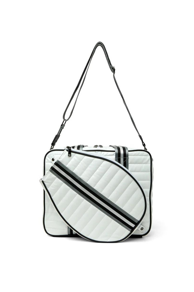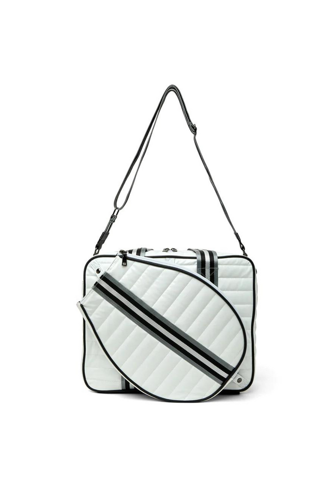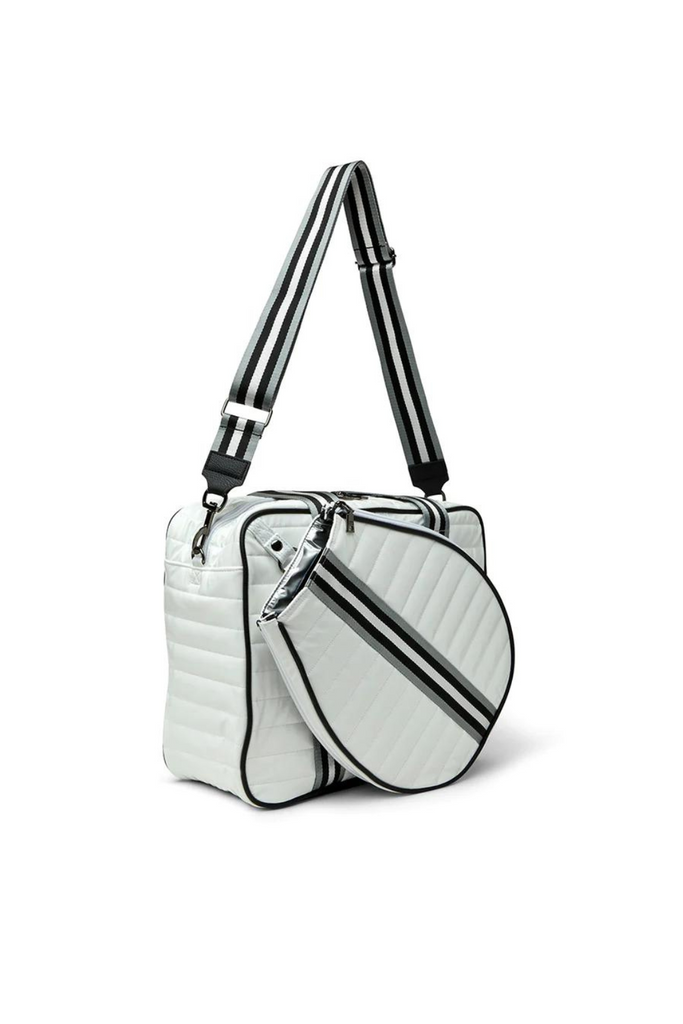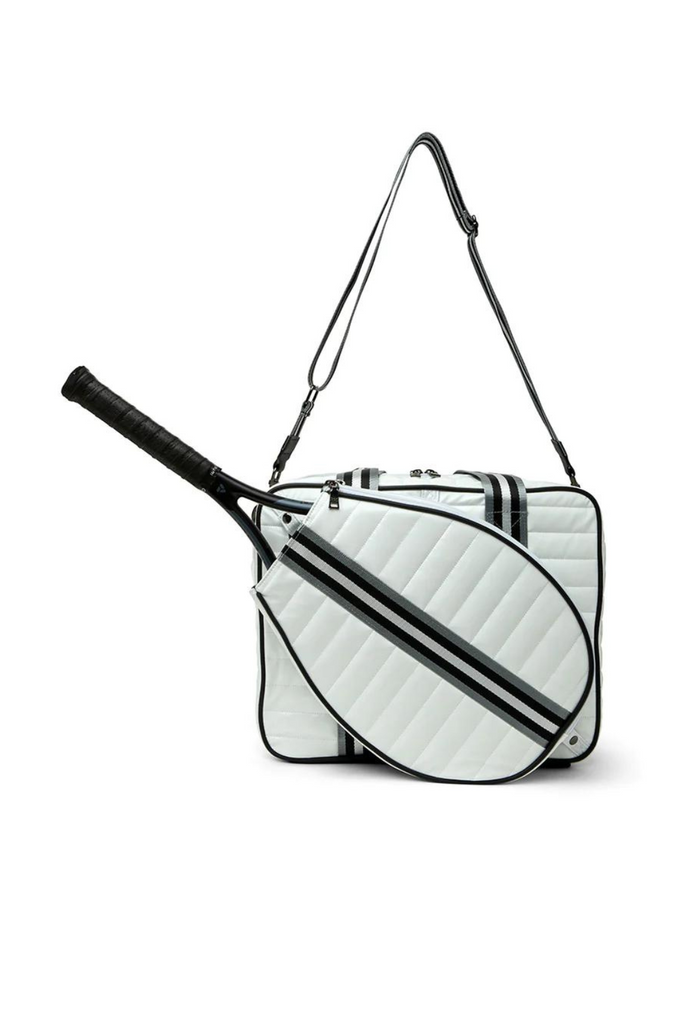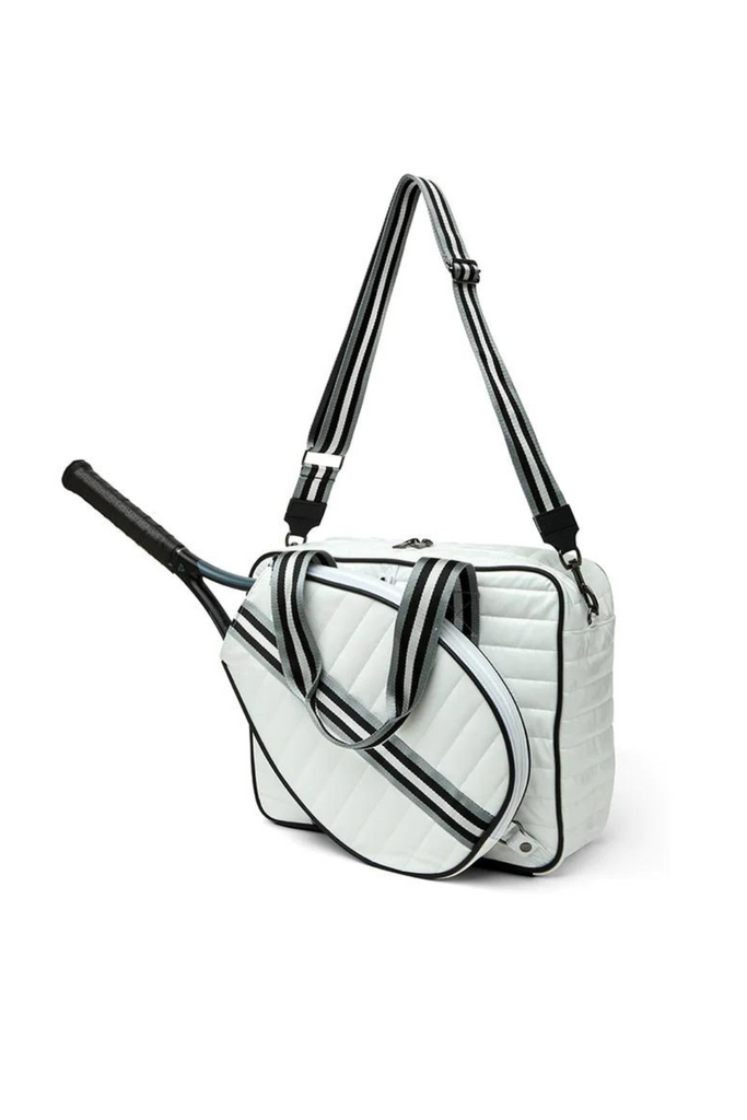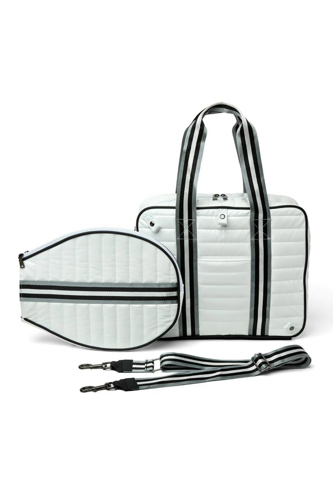 Ready for a game of tennis? Fashion seamlessly meets functionality in a Think Royln signature bag, ideal for an entire day of play or a quick match on the court. Wear it your way, either together or as separate pieces; this is the perfect fusion of a tote and racket bag. Game, set, and style, all in one!