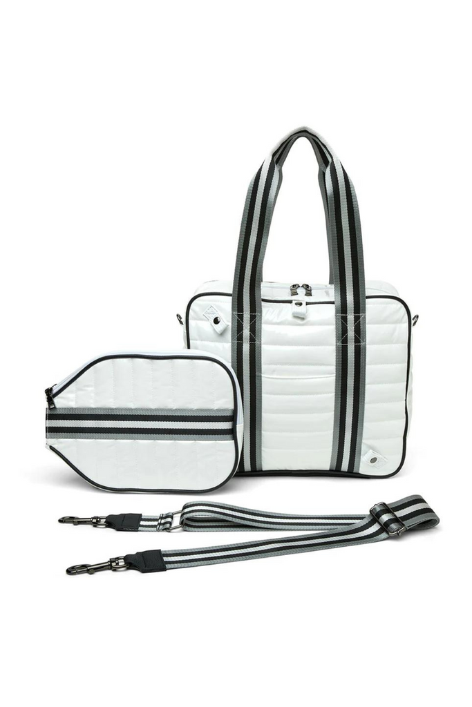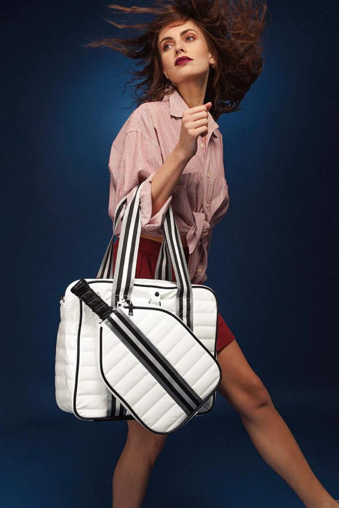Embrace the current style trend with the Sporty Spice Pickleball Bag. It's a fusion of fashion and functionality, embodied in a signature Think Royln bag, ideal for a full day of play or a swift match on the court. Carry it the way you like—unified or separately—this bag effortlessly combines the elements of a tote and racket bag. It's a winning match—game, set, and style!