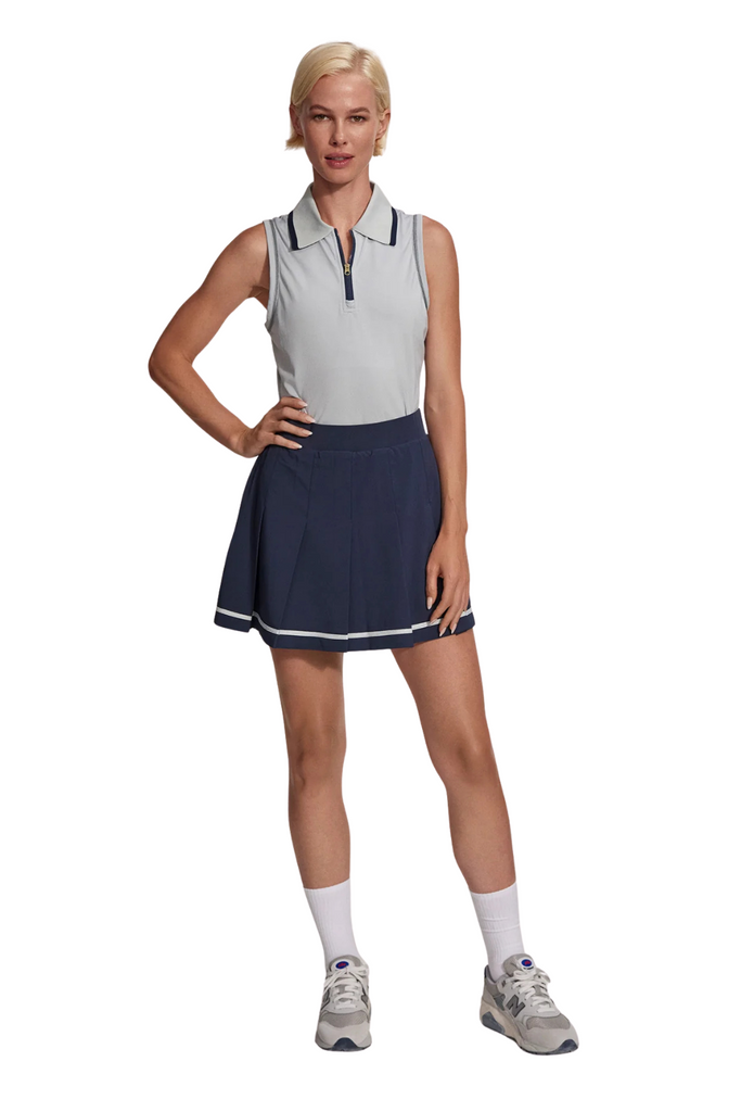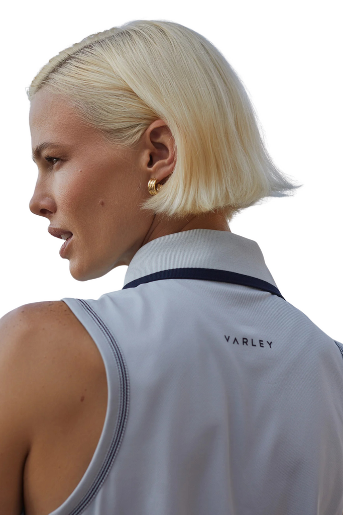 For a modern take on classic preppy style, slip into Varely’s Collared Stretch Pique Tank. Featuring a tipped collar and subtle two-tone tape detailing, it delivers performance with effortless sophistication—ideal for golf, tennis, or any active pursuit. Stay cool and comfortable on the move, then layer a V-neck sweater over your shoulders for an instantly elevated, country club-ready look.