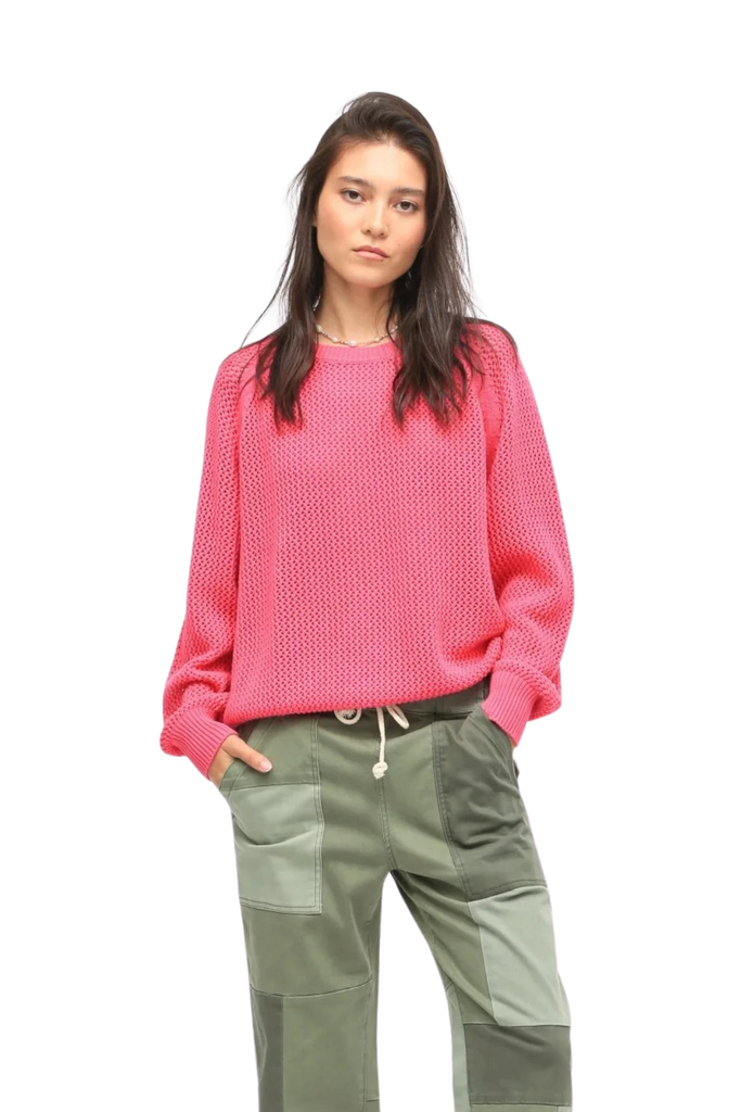 The Chloe Sweater is an effortless staple, crafted in 100% open-knit cotton for breathability and year-round wear. Designed with raglan sleeves and a relaxed fit, it drapes with ease and layers beautifully, whether paired with denim for the everyday or slipped over a dress for a polished, transitional look.