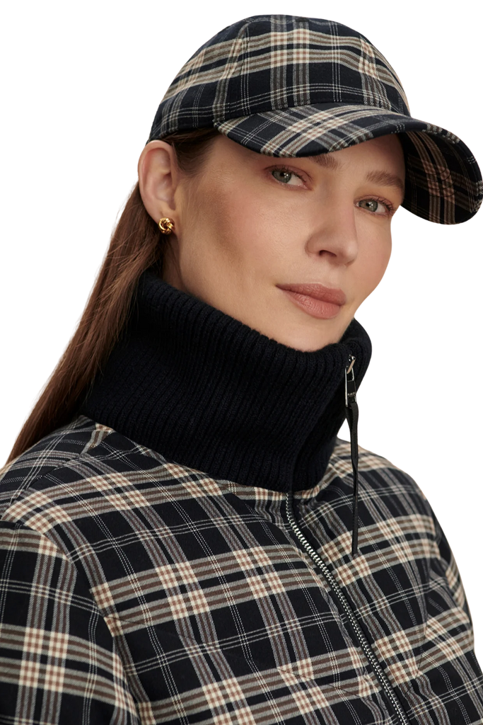 Varley’s Aliha accessory brings a bold, all-over check design to any outfit, making it the perfect statement piece to elevate your look.