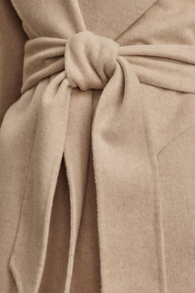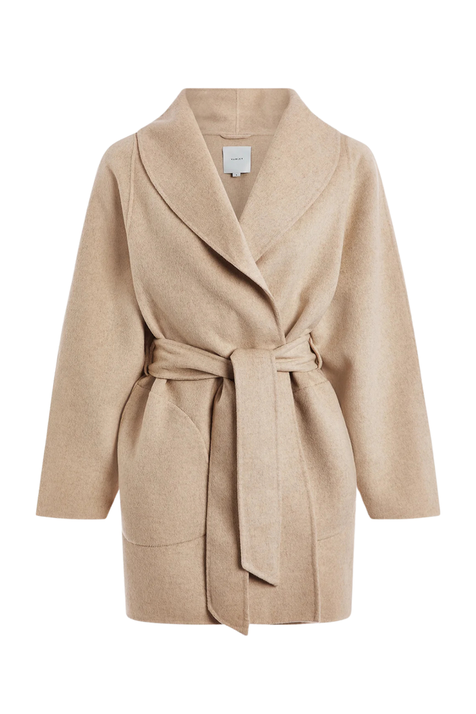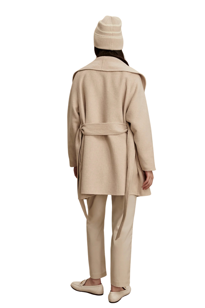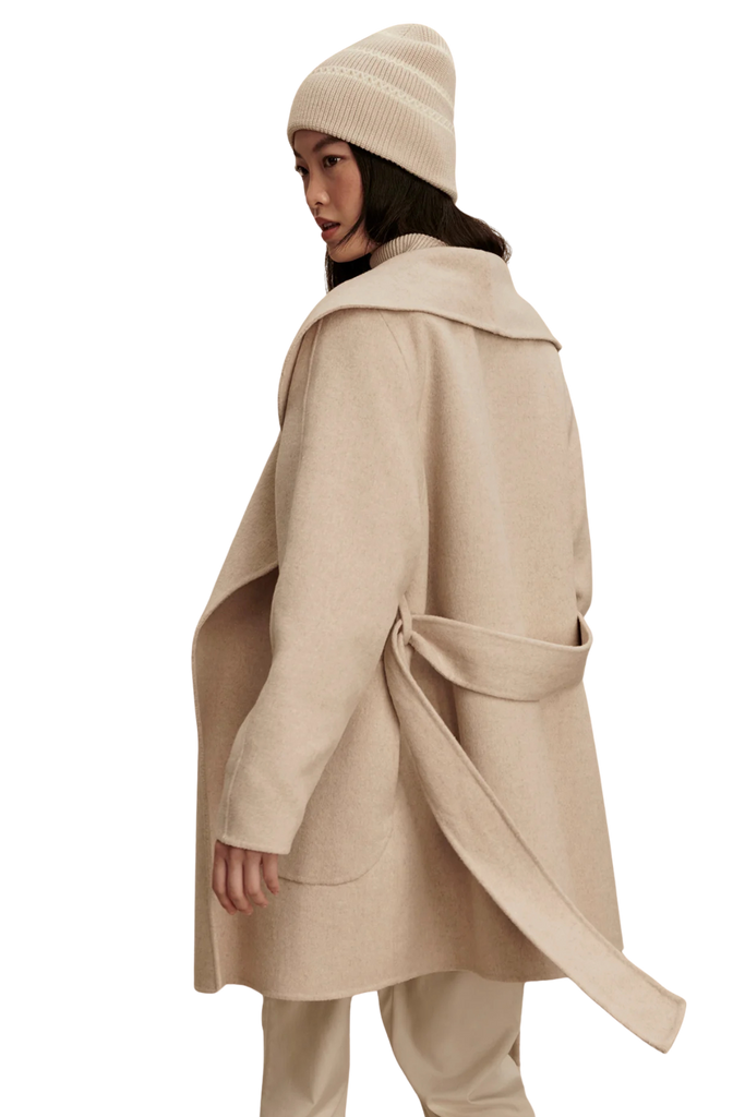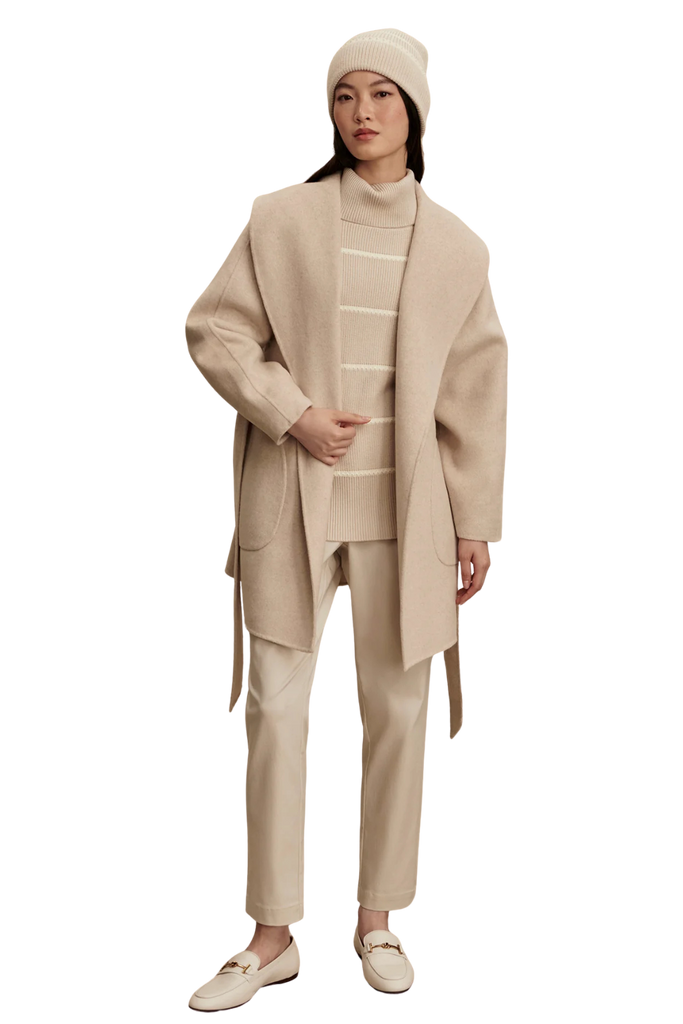 The Edgemere Wrap Jacket is an effortlessly refined layering piece—super soft, lightweight, and easy to style with everyday looks. Crafted from a luxurious double-faced wool blend, it features a shawl collar, detachable waist belt, and curved patch pockets for a polished finish.