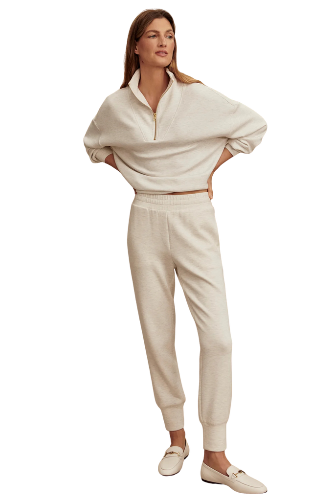 From Varley, these pants deliver a slim, tailored silhouette with a softly cuffed hem for a polished yet relaxed finish. Crafted in the brand’s signature DoubleSoft® fabric, they feature an elasticated waistband with an internal drawcord for a personalized fit, plus side and back pockets for everyday ease. Pair them with Varley’s DoubleSoft® sweaters for the perfect balance of comfort and sophistication—an effortless addition to the O2 edit.