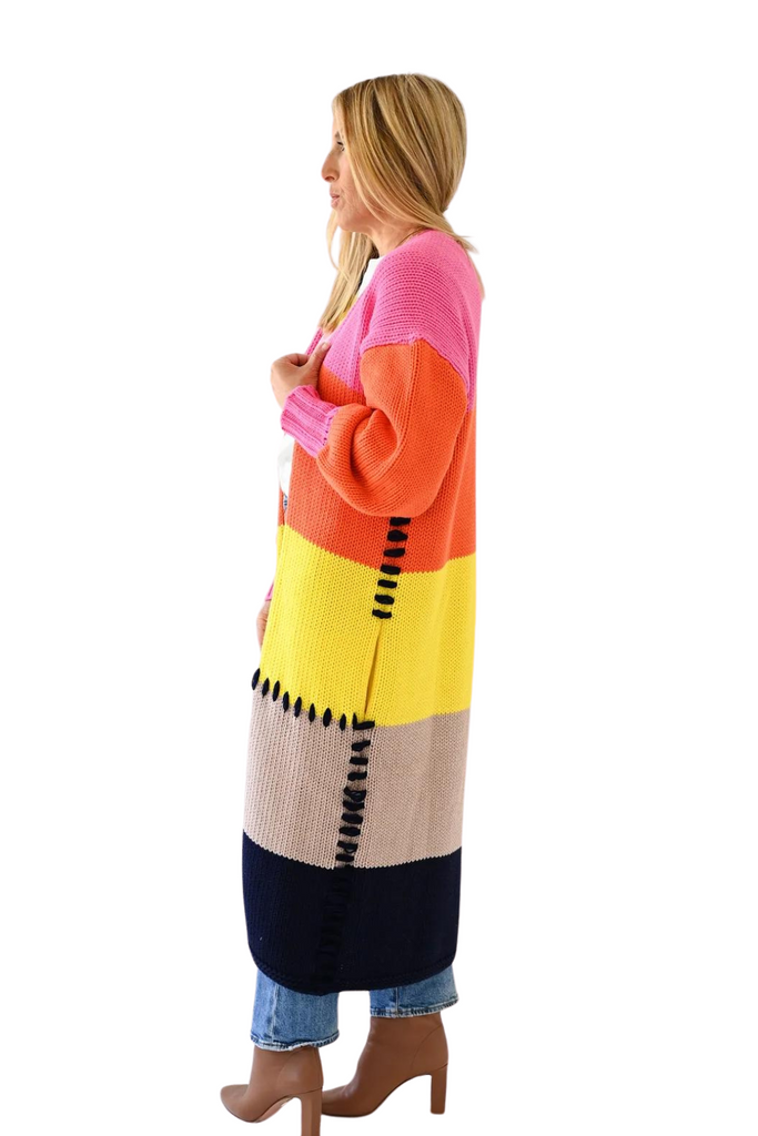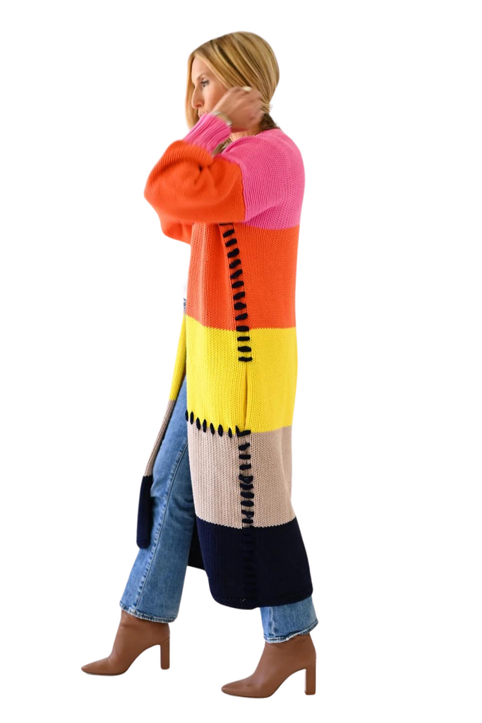 Meet the Alaina Duster in Cabin Stripe! We're enchanted by this cotton-cashmere blend duster, adorned with hand whip-stitch details throughout. Versatile and suitable for all climates, this piece effortlessly complements a variety of outfits.