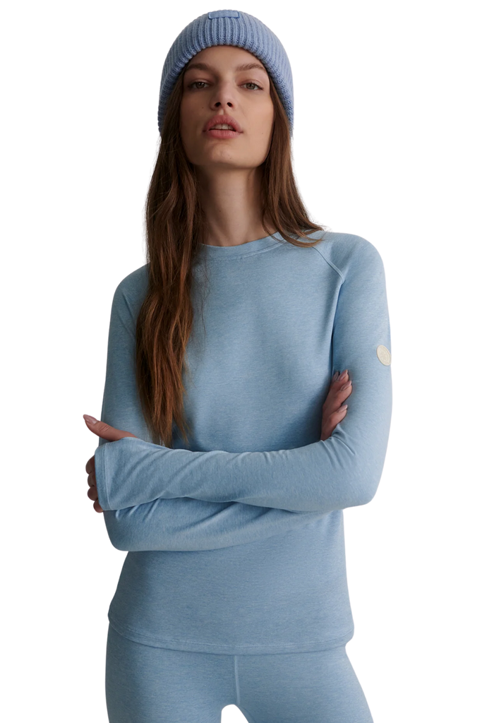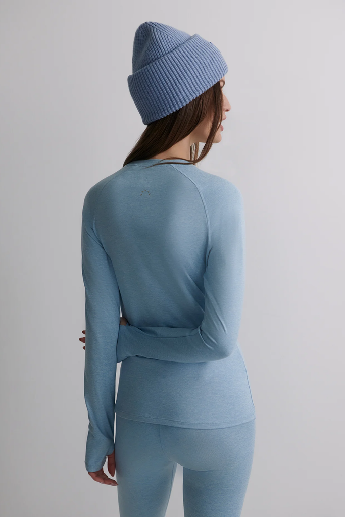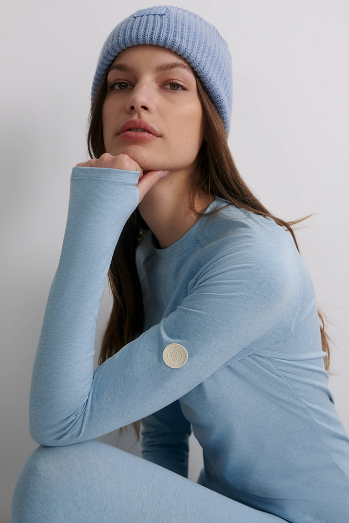 The Always Warm crew-neck baselayer combines warmth and style in a versatile, cold-weather design. Crafted for layering under coats or chunky knits, it features thumbholes, curved sleeves for ease of movement, and a branded Alpine patch for a refined finish.
