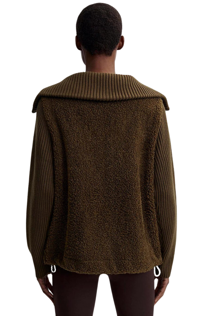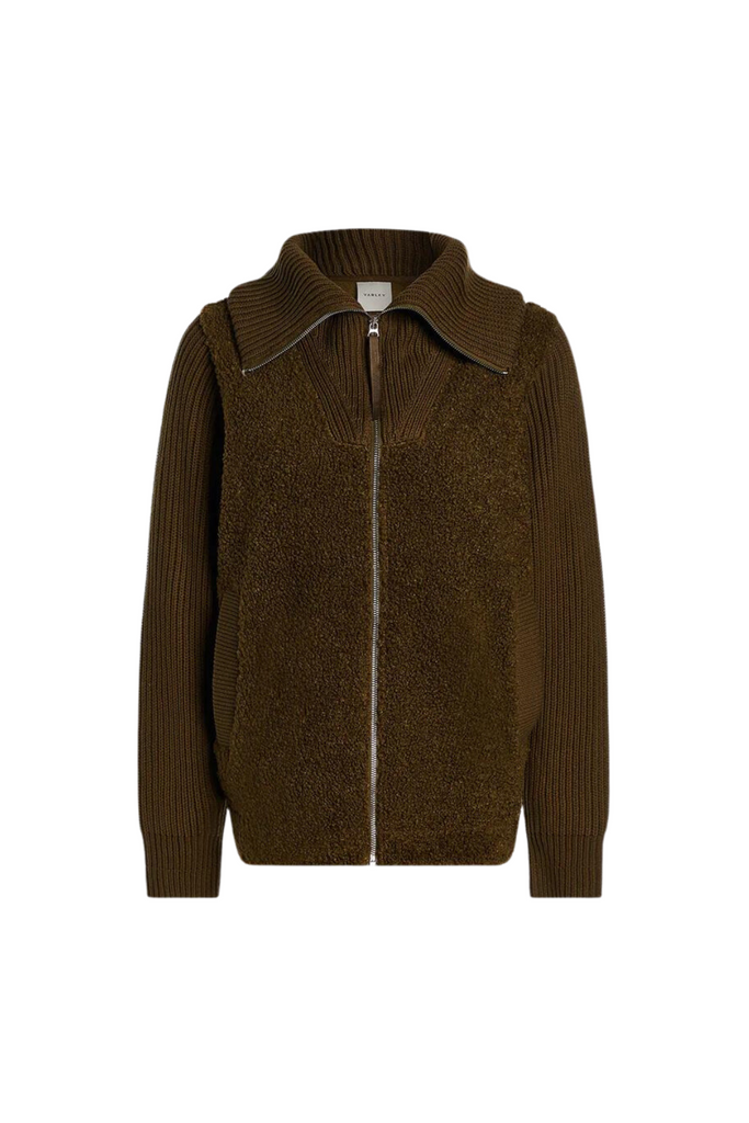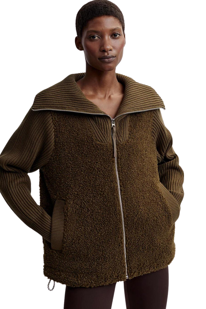Blending Chunky Cotton Knit with Boucle Sherpa, we present the Ardley—a luxuriously soft, generously sized layer. This stylish zip-through creation is crafted to elevate both warmth and texture in your wardrobe. The Ardley showcases a plush boucle sherpa body, complemented by a strikingly exaggerated rib-knit collar and sleeves. Designed for an oversized fit, this combination jacket comes with an internal cinch hem for personalized styling options.