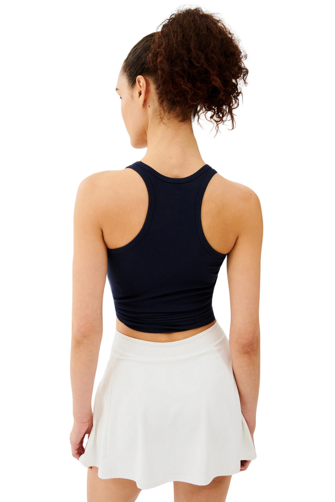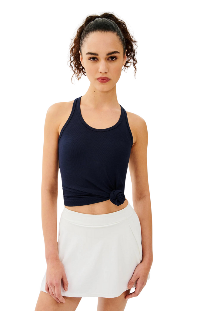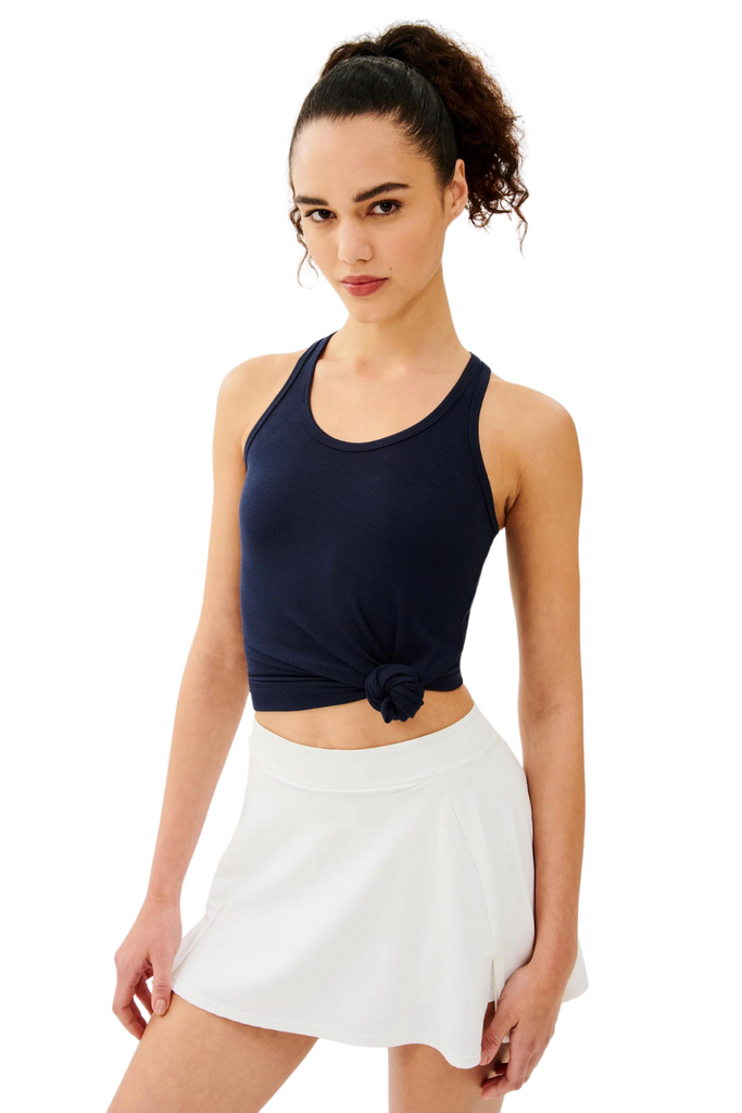 A Body hugging racerback layering tank for running, yoga, CrossFit, barre, Pilates, spin class or a hard core workout at the gym.