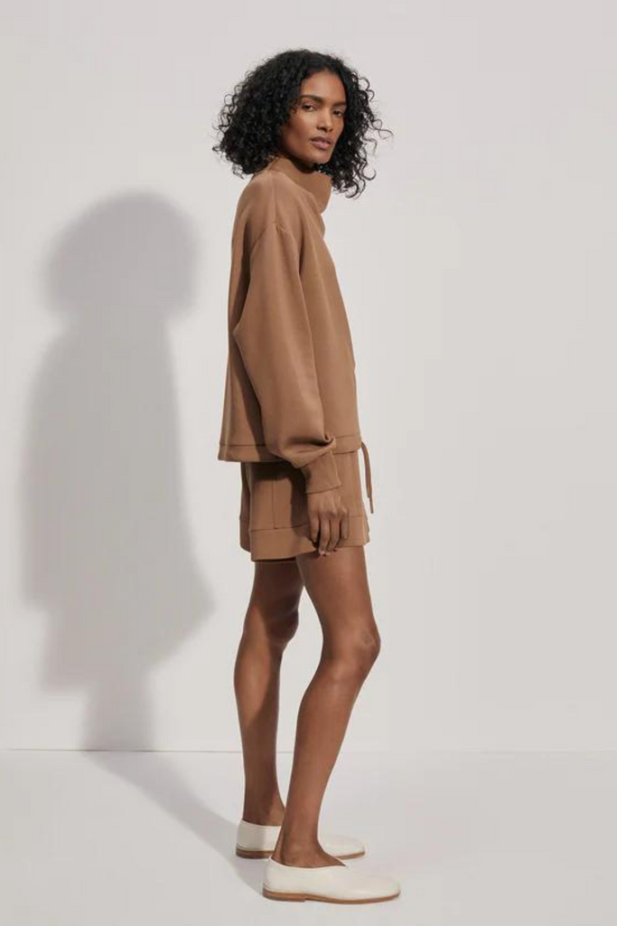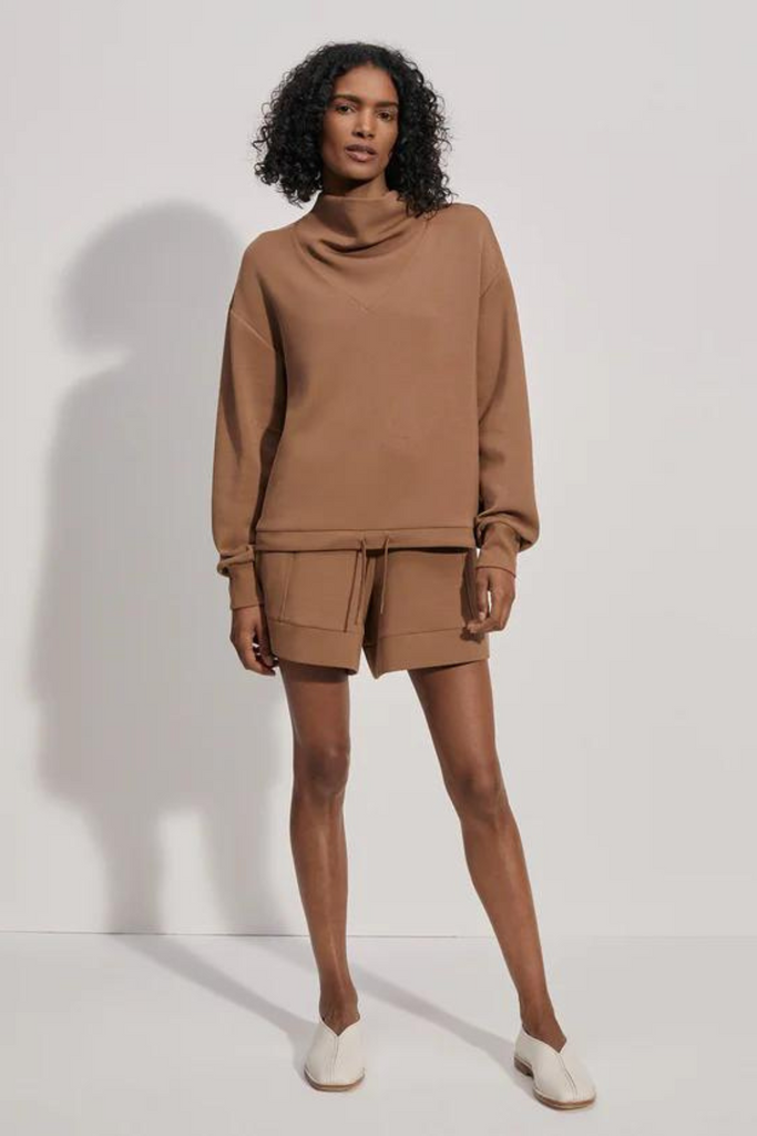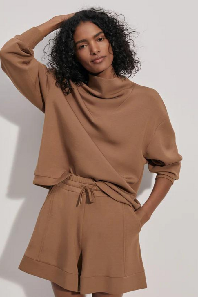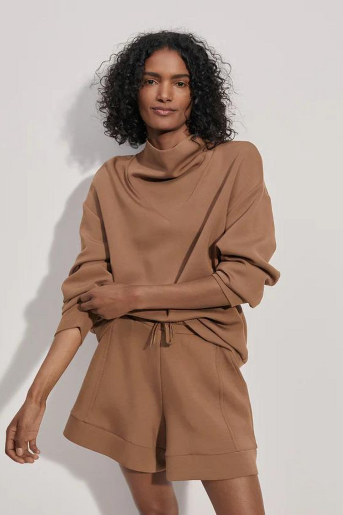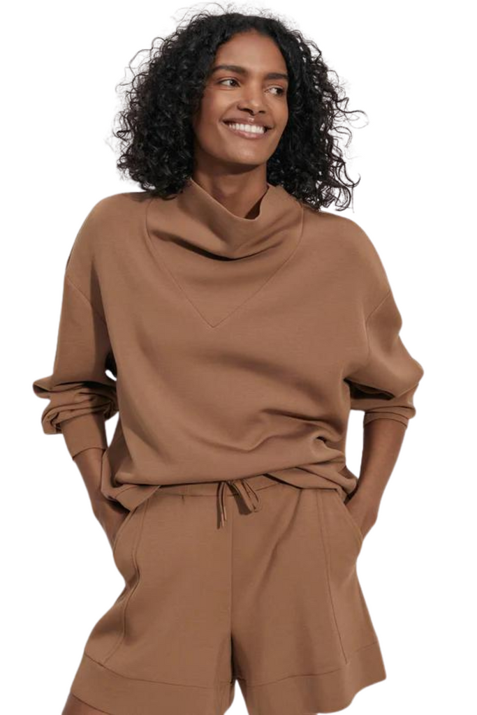 The Betsy sweat is an oversized wardrobe essential crafted from Varley's signature DoubleSoft™️ fabric, offering an elevated twist on the classic sweatshirt. Featuring an elegant cowl neck and modern panel detailing, the Betsy sweatshirt guarantees all-day comfort with its soft and lightweight fabric, while the versatile drawcord at the hem allows for personalized styling, making it a versatile addition to any wardrobe.