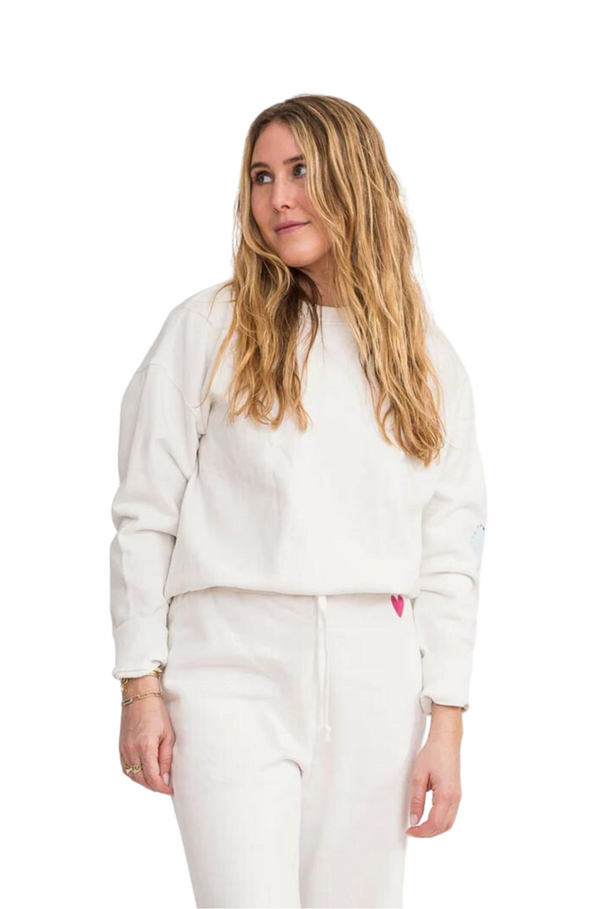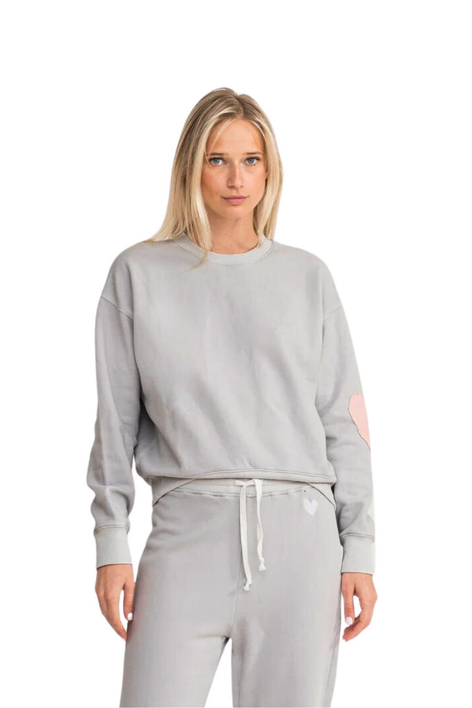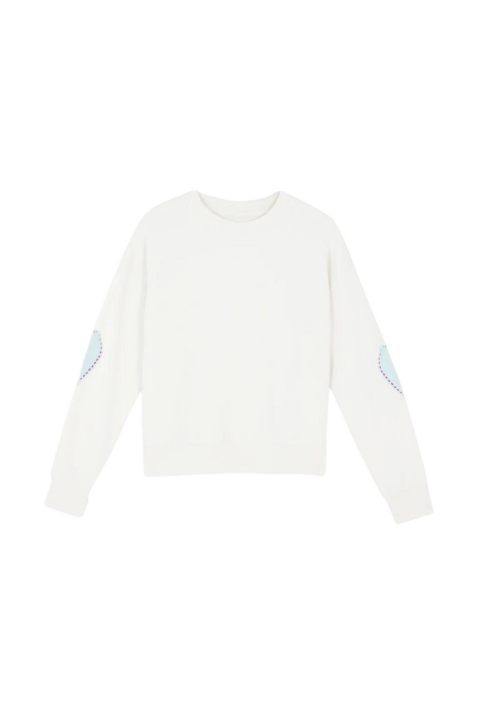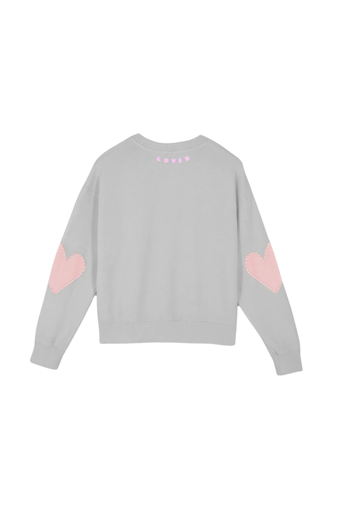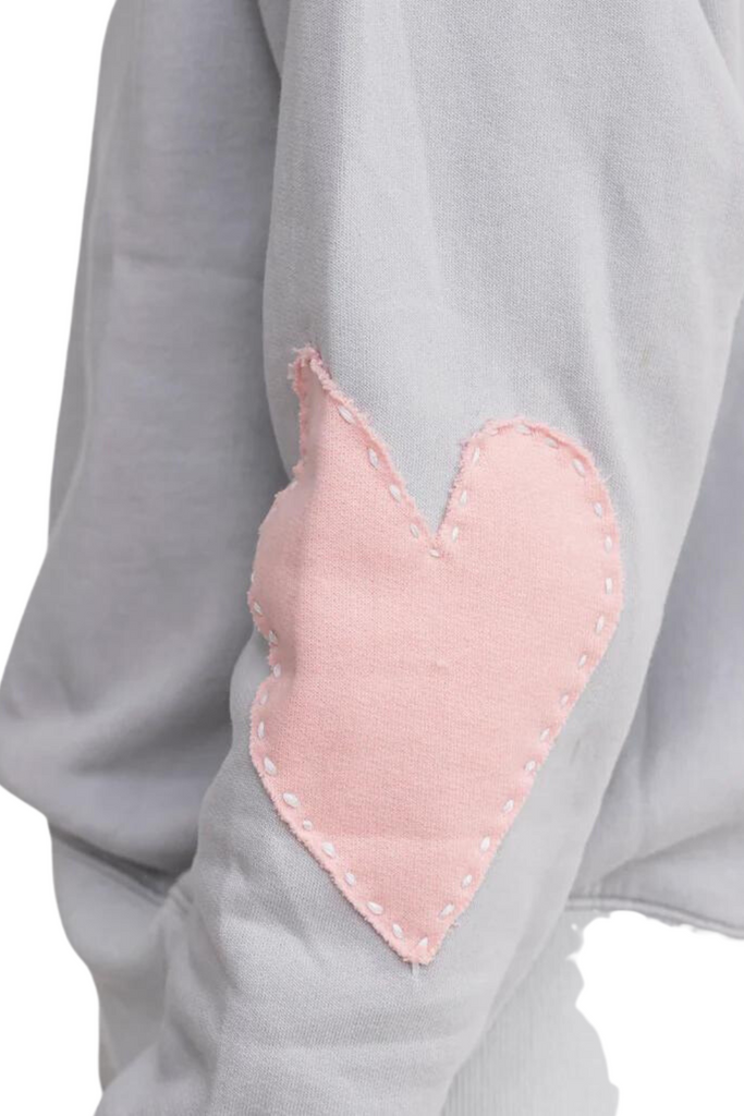 The Boyfriend Sweatshirt, crafted from 100% cotton fleece, showcases the endearing Kerri's imperfect Heart elbow patch. The patch is expertly stitched with a contrasting color for added visual appeal.