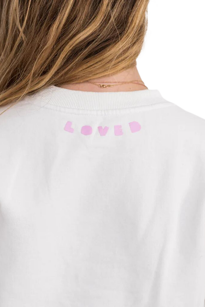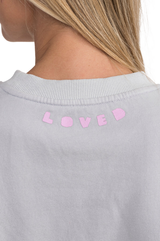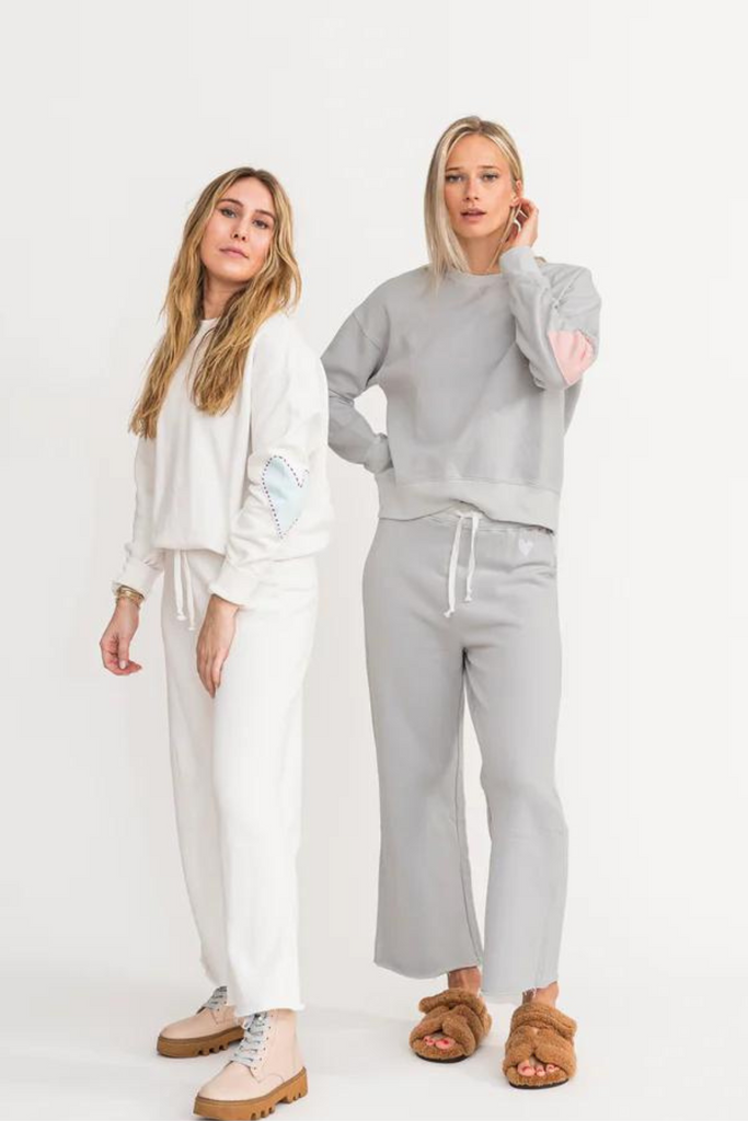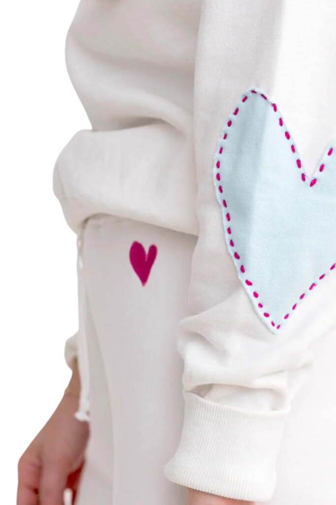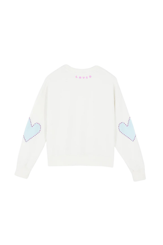 The Boyfriend Sweatshirt, crafted from 100% cotton fleece, showcases the endearing Kerri's imperfect Heart elbow patch. The patch is expertly stitched with a contrasting color for added visual appeal.