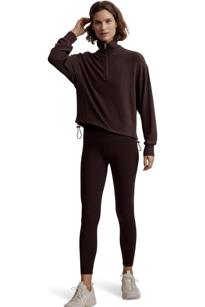 Crafted with a focus on versatile layering, the Varley Collett Half Zip is a midweight top layer designed for a relaxed fit, featuring a shorter body and a high, half-zip neck.