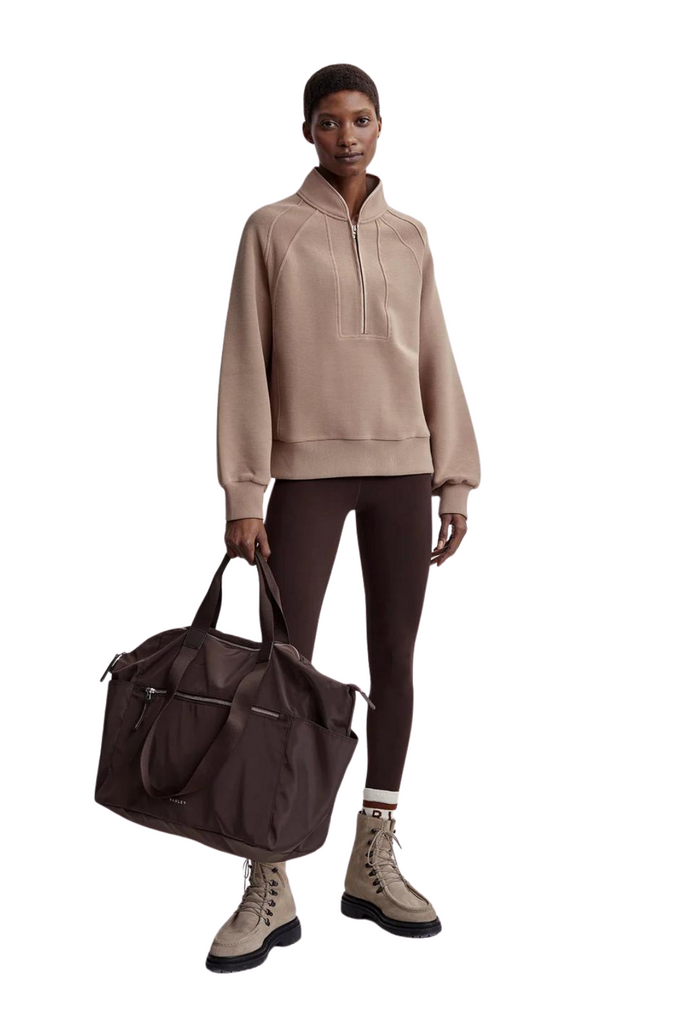 Explore the versatility and modernity of the Cortina sweat, a stylish addition to your daily wardrobe. This sweat is crafted from Varley's essential Ottoman fabric and designed in a contemporary silhouette. Boasting a mandarin collar, sateen trim, and balloon sleeves, it pairs seamlessly with our DoubleSoft™ pants for a chic ensemble.