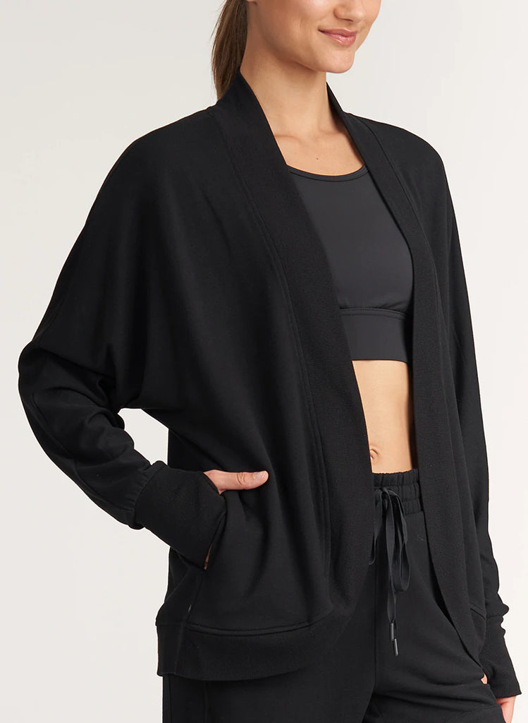 Cozy Rib Trim Cardigan W/ Pockets Black