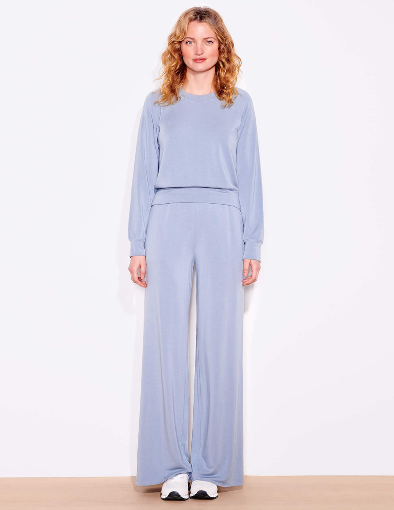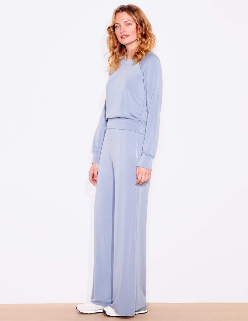 A cut-off, terry cloth, sweatshirt designed with raw hem and a cropped silhouette.