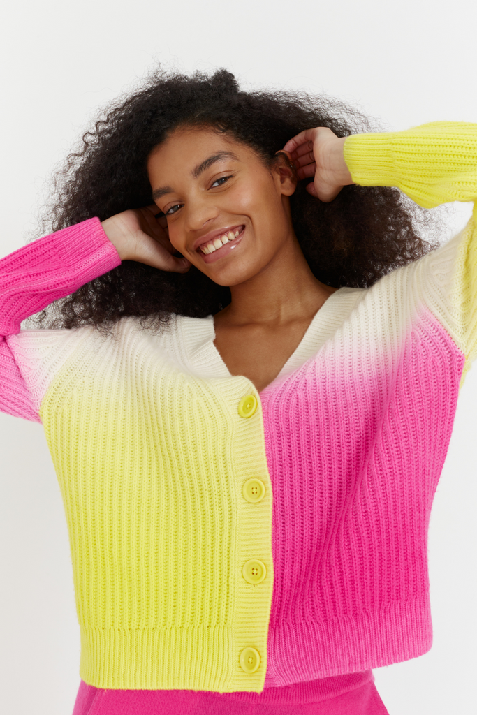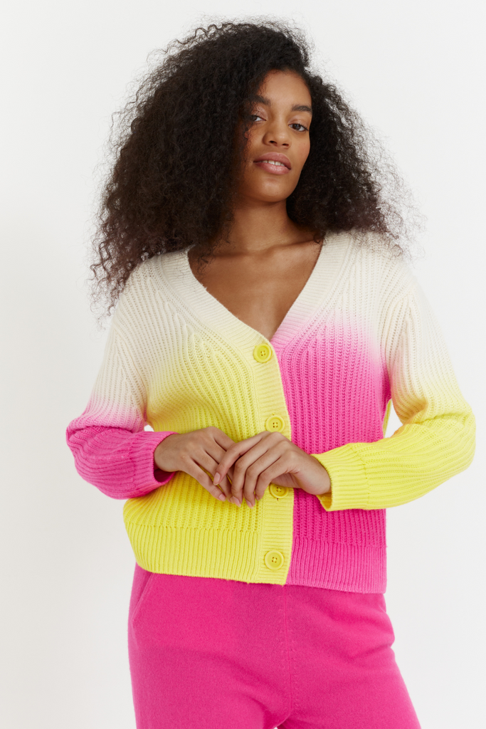 Dip Dye Lofty Fishermans Rib Cardigan