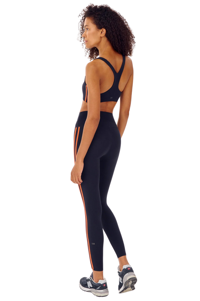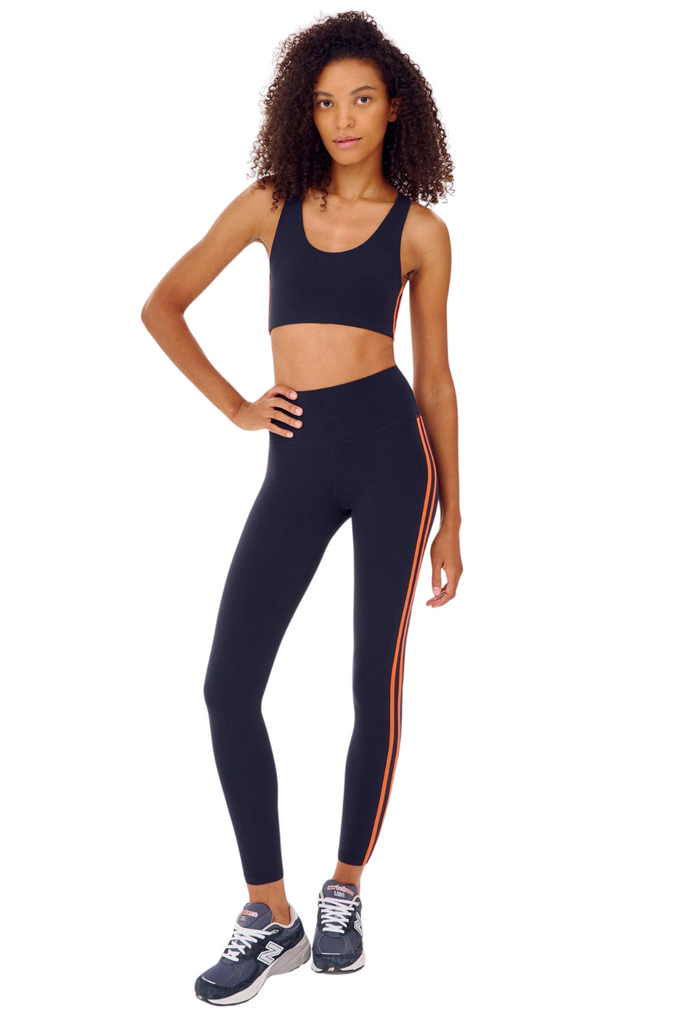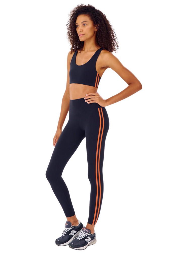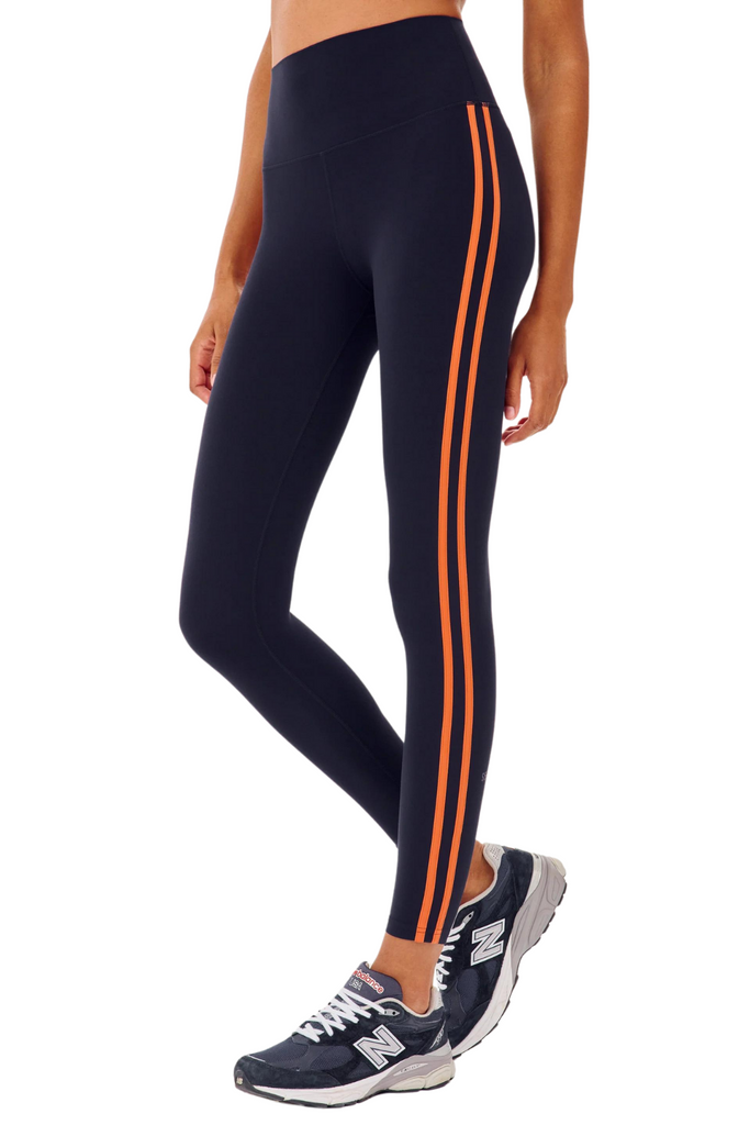 High waist legging with Ultra luxe airweight fabric has been elevated even further with a double side stripe. The perfect tight for yoga and pilates.