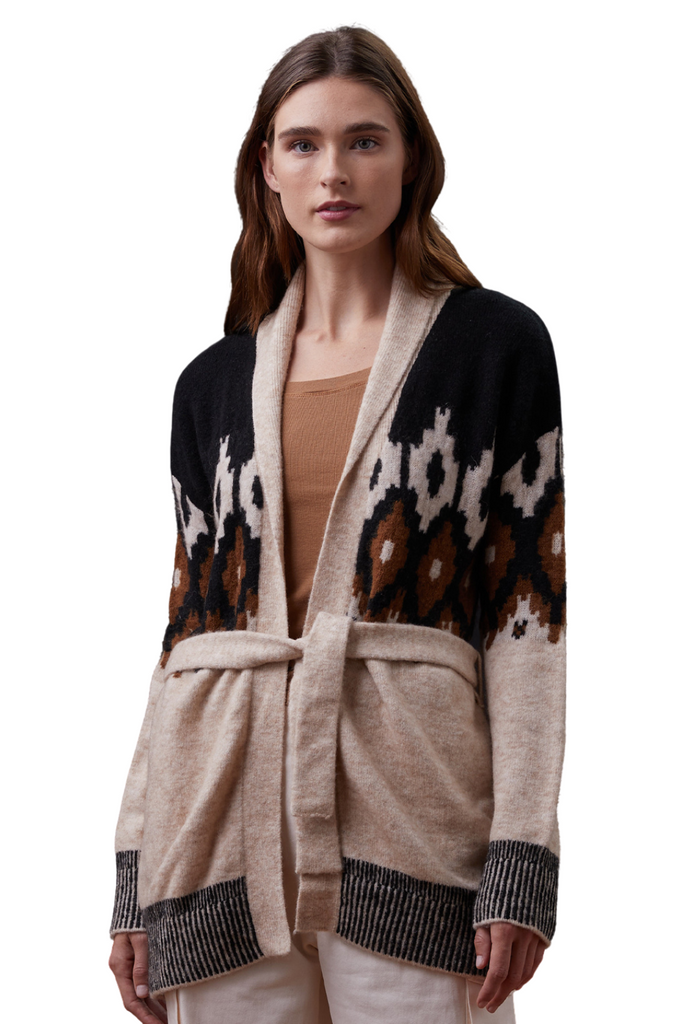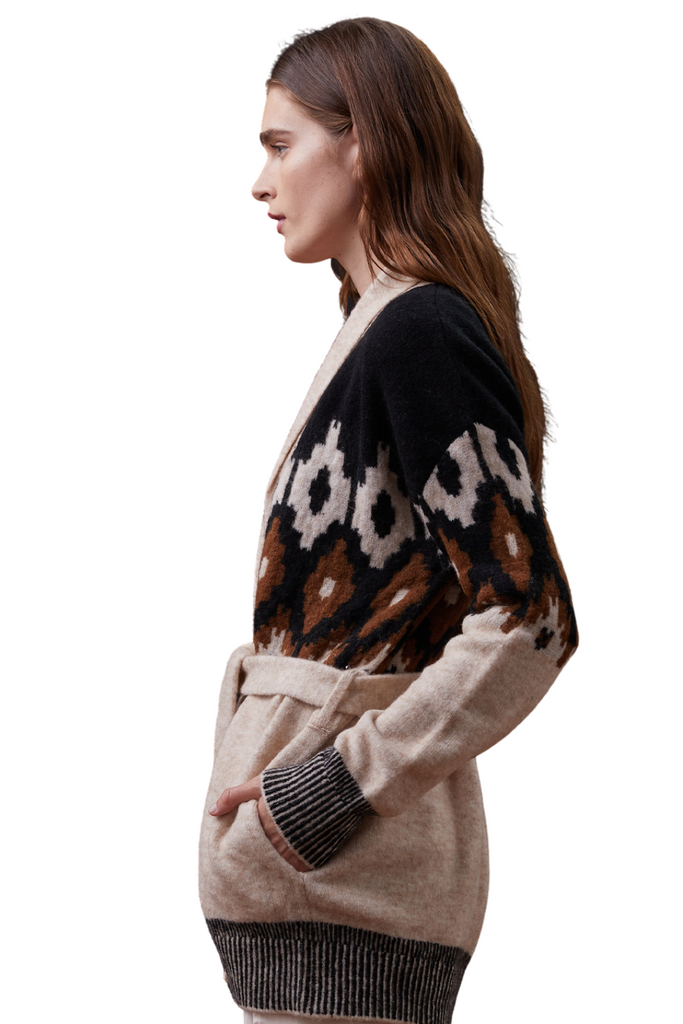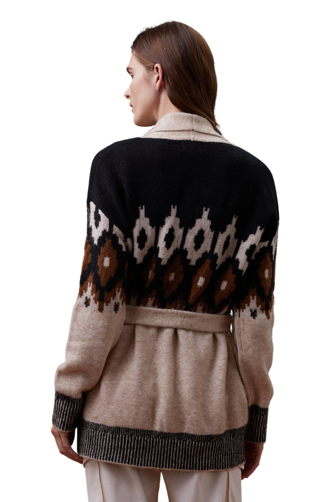 Fair Isle Shawl Cardigan Sweater Off White