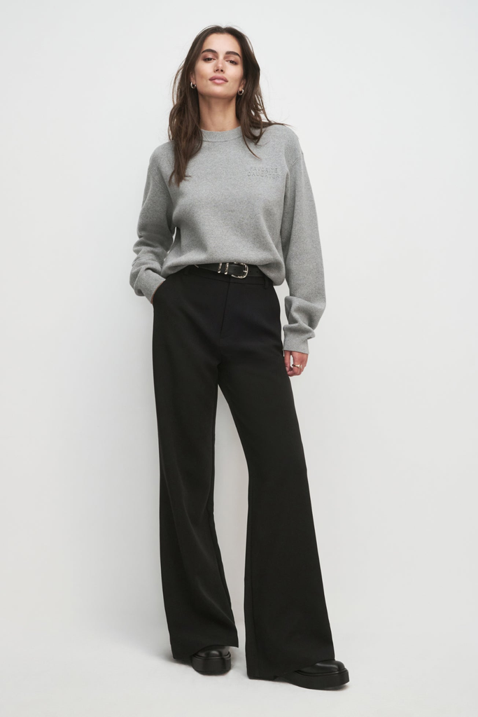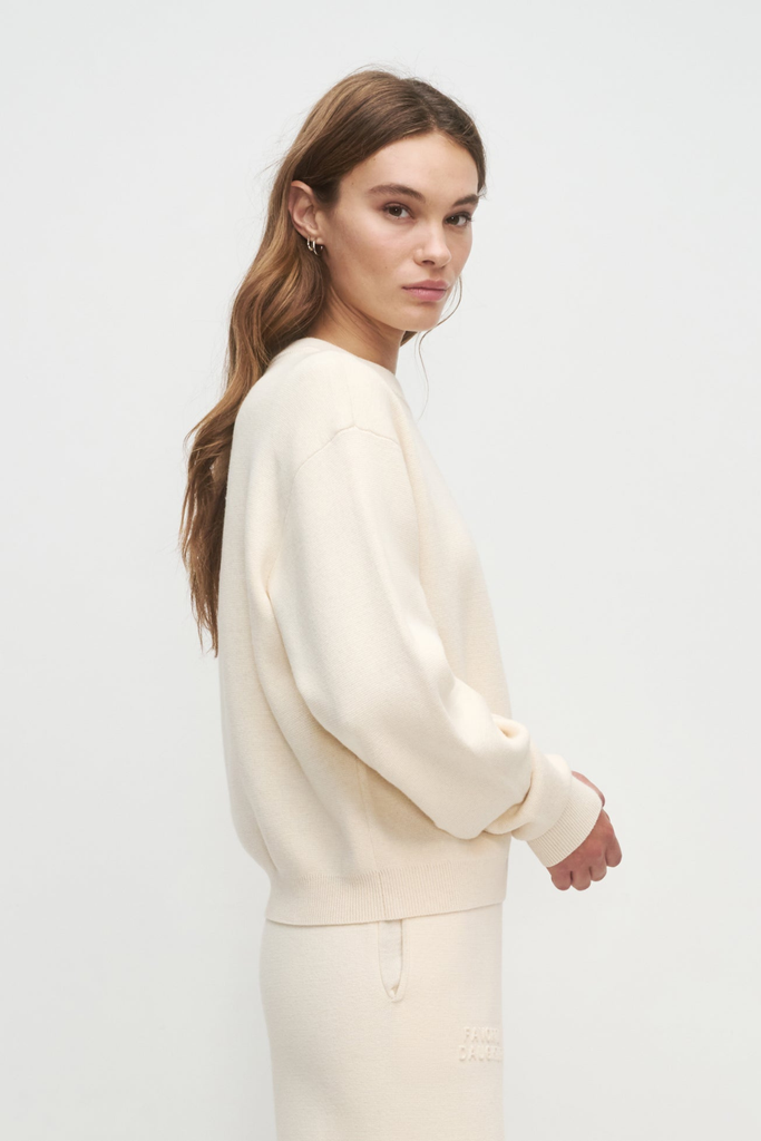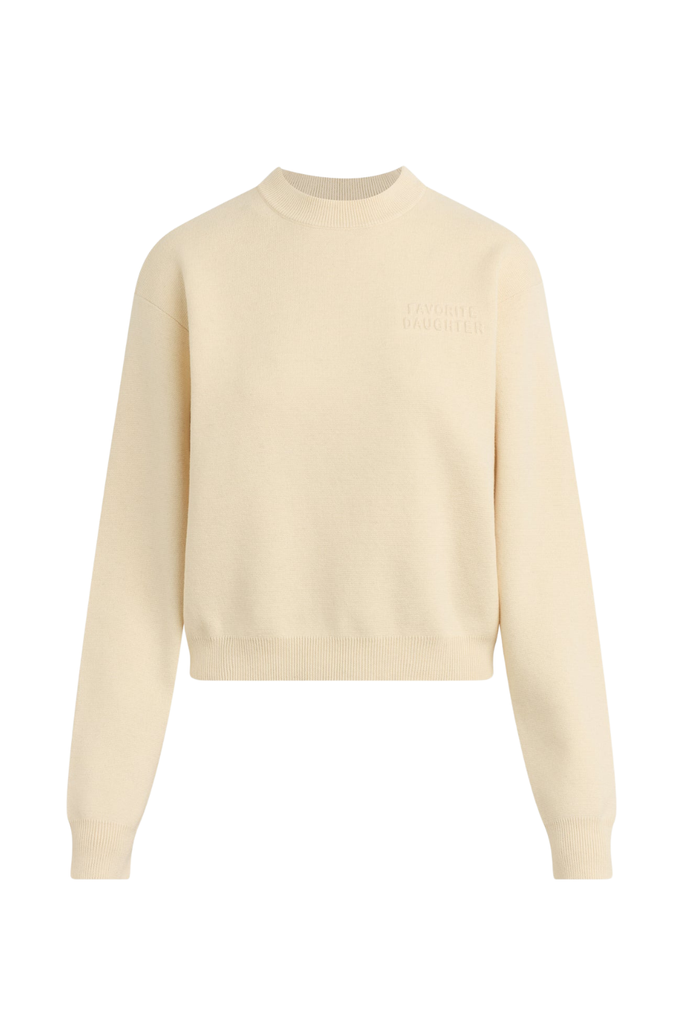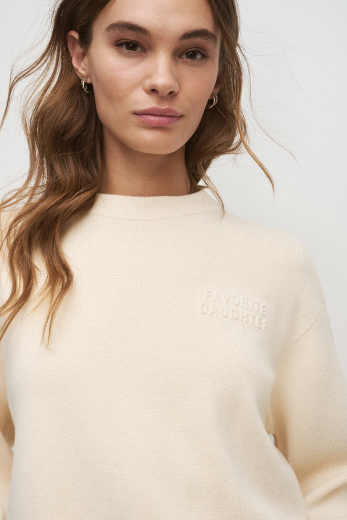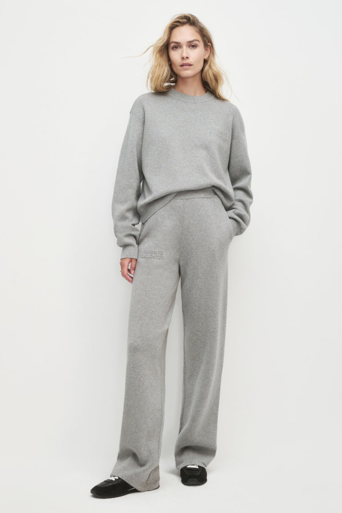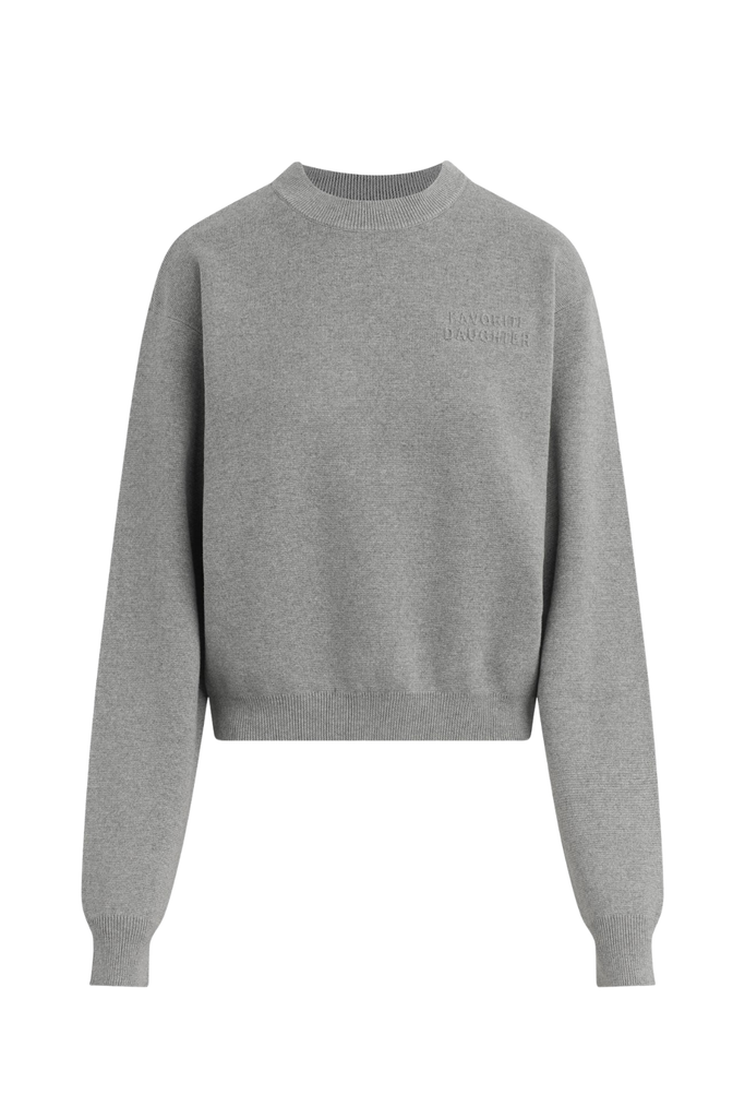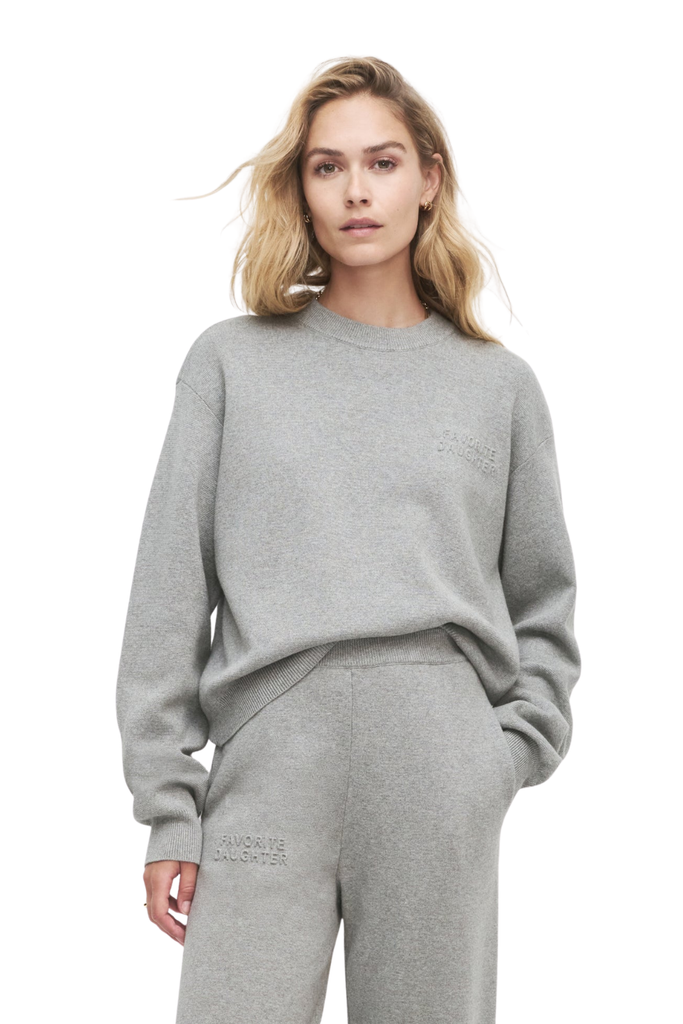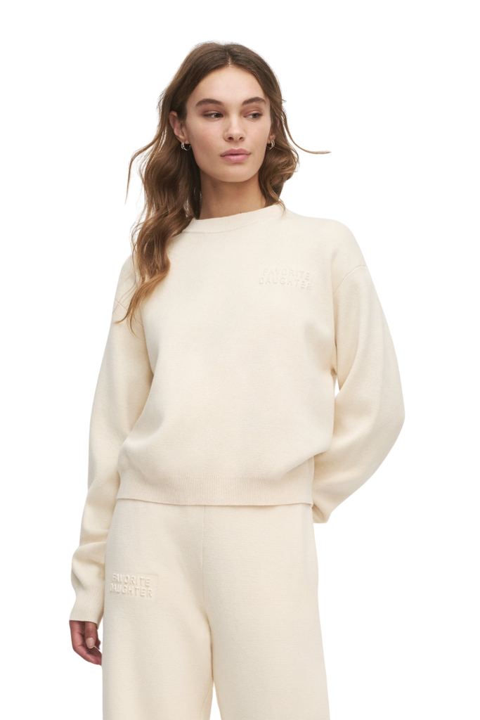 Designed for effortless comfort with a polished edge. The Fatigue Sisters Sweatshirt is crafted from a plush cashmere-knit blend with a soft hand feel and modern silhouette. Finished with ribbed cuffs and hem and an embossed Favorite Daughter logo, it’s the ultimate throw-on piece. Pair with the matching jogger or wide leg pant for an elevated off-duty set.